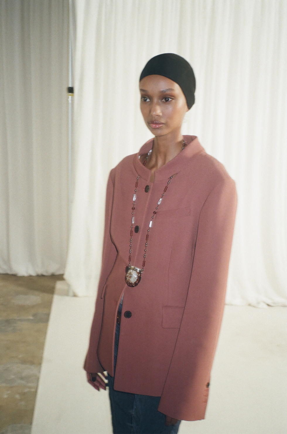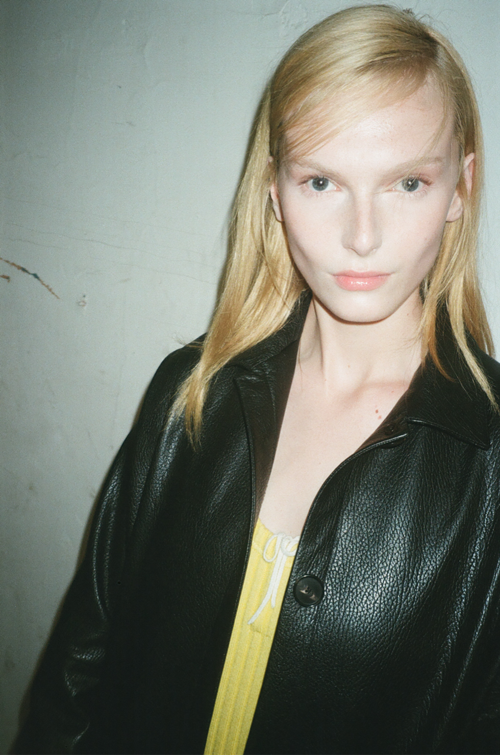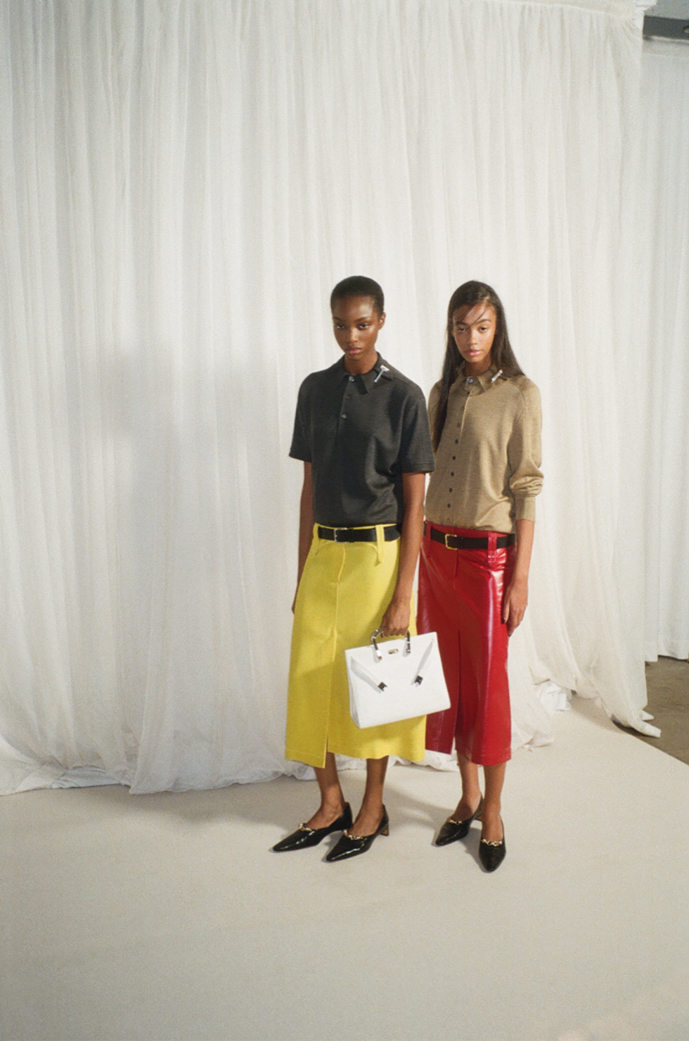 That duality played out in every look. The crisp codes of American sportswear — the polo, the trench, the striped shirt — sat alongside drop-waist dresses that channeled 1920s romance. Tailoring leaned low with hip-slung trousers and leather skirts, while jackets came rigged with invisible zippers so their shape could be adjusted on the fly. One standout was a piped blazer, inspired by Burch’s father, Ira Earl "Bud" Robinson, that nodded to her own personal family heritage, while also feeling startlingly fresh.