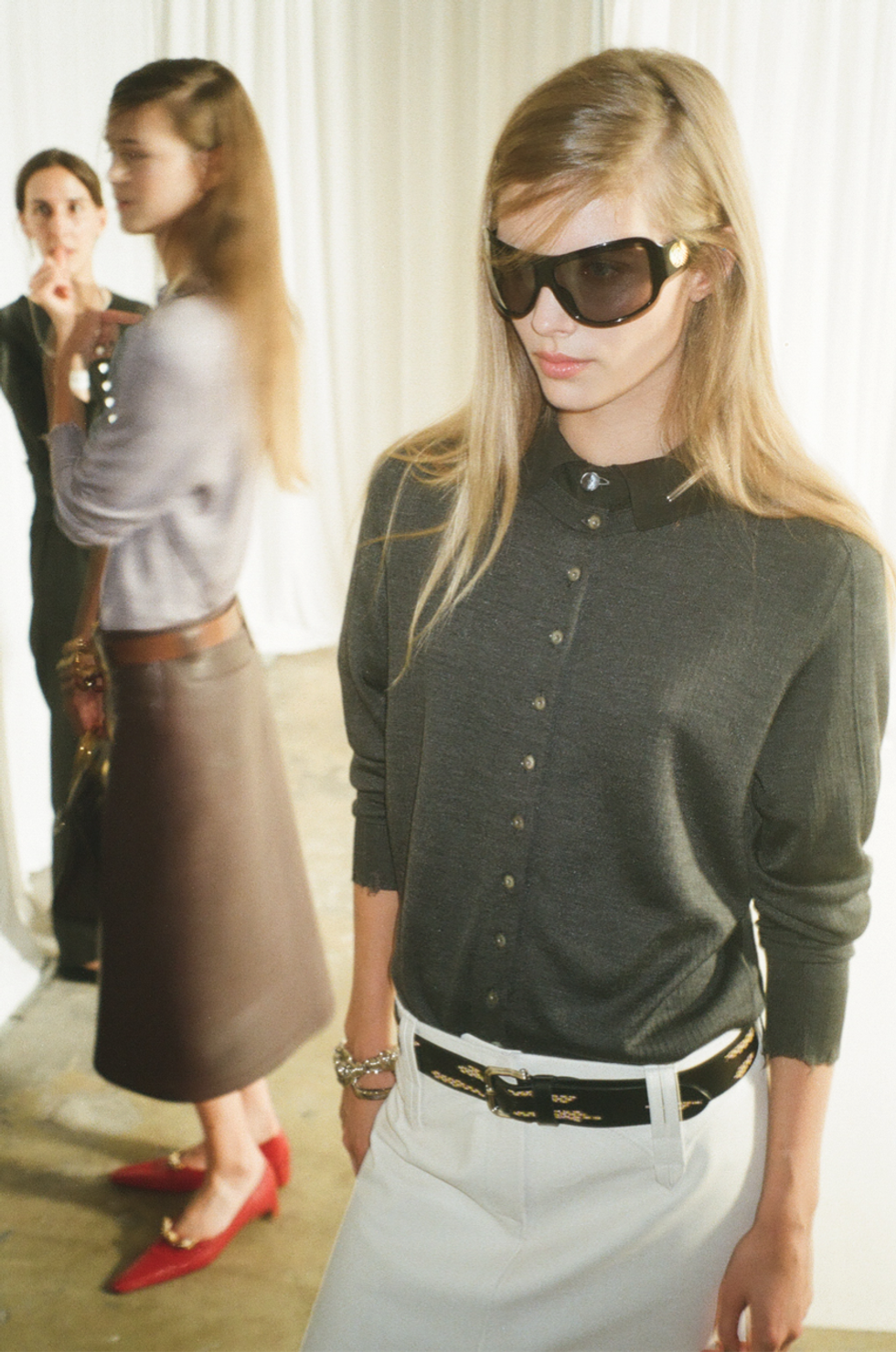 With all this precision and attention to detail, one thing stood out particularly as a contradiction: the hair. Hairstylist Guido Palau created a messy, elegant, highly intentional, chaotic side-swept look that gave the whole collection a touch of perfect messy imperfection.