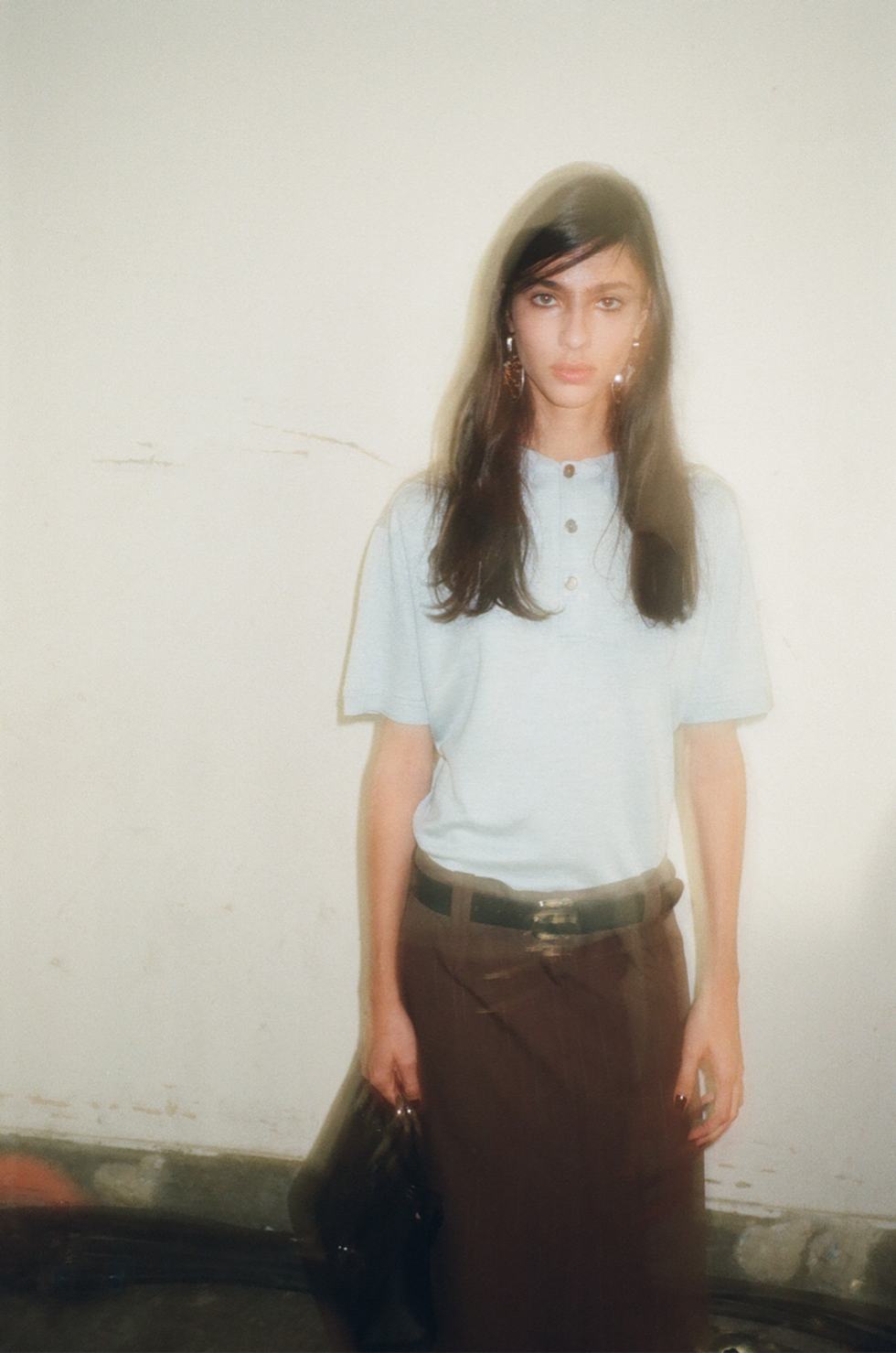 If the silhouettes gave us structure, the fabrics gave us soul. Burch’s team played with refined wool and waxed canvas against opulent, time-softened textures in wrinkled lamé, shredded silk, crushed viscose. Imperfection was engineered with scientific precision — frayed edges reinforced so they never unraveled, sheer polos “mended” with delicate seed beads.