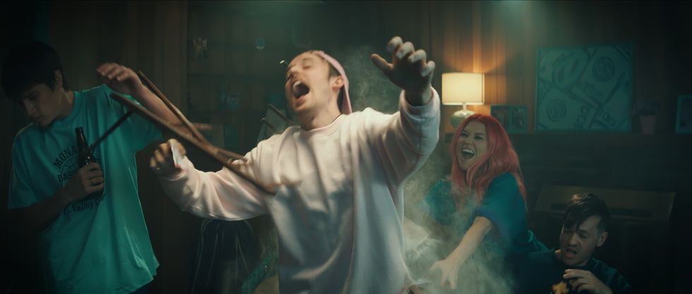 After Trump declares in edited audio that Transviolet's "career is over," the video breaks out into post-apocalyptic, money-driven chaos. The bandmates violently turn on each other over a winning lottery ticket as satire-heavy infomercials play in the background with copy like "Guns Rock" and "Need insulin? Haha that sucks." The video, directed by Kyle Vorbach, makes no attempt to downplay the political nature of the song, and instead uses the dramatized scenes to make more lighthearted commentary on darker social context.