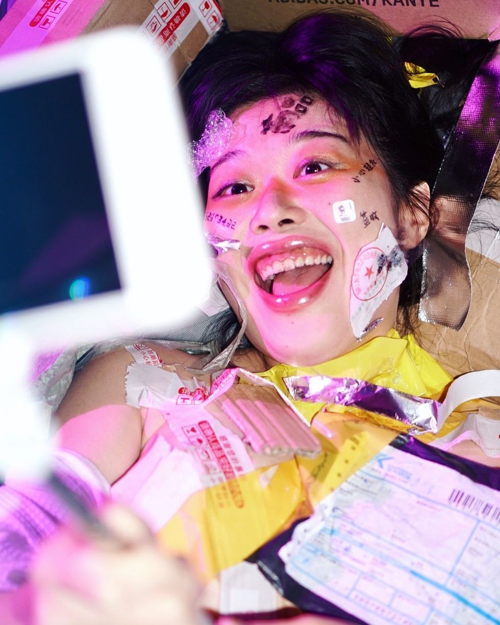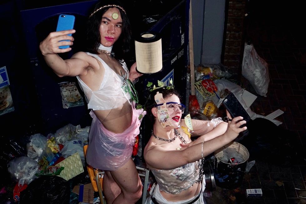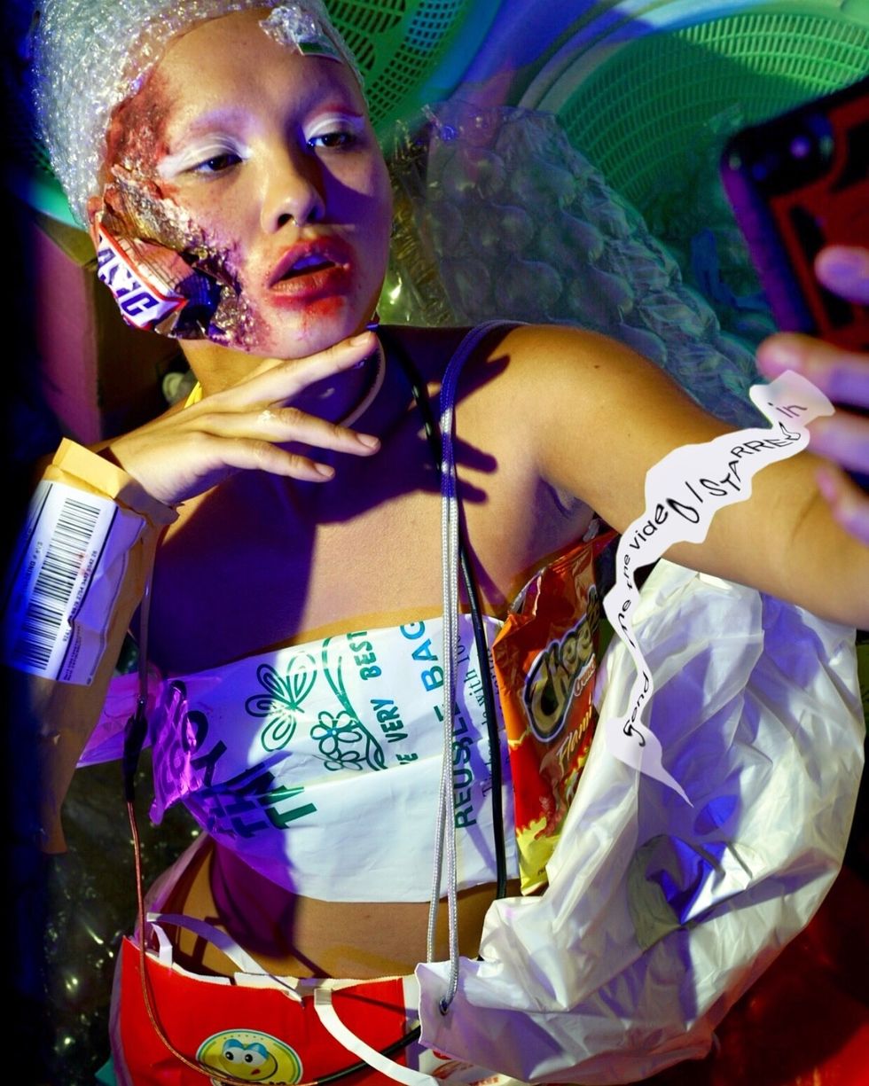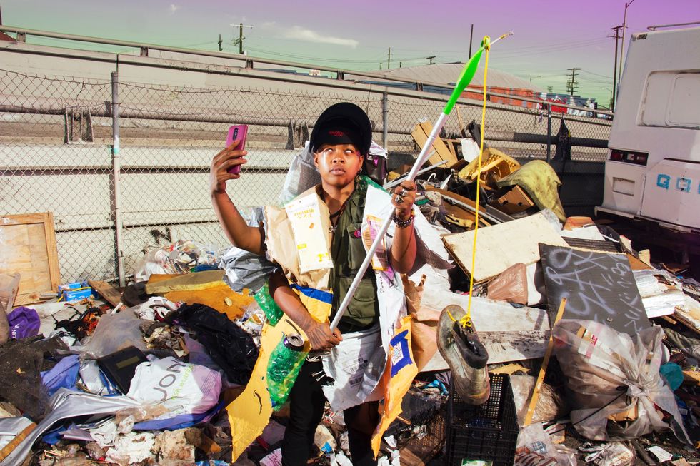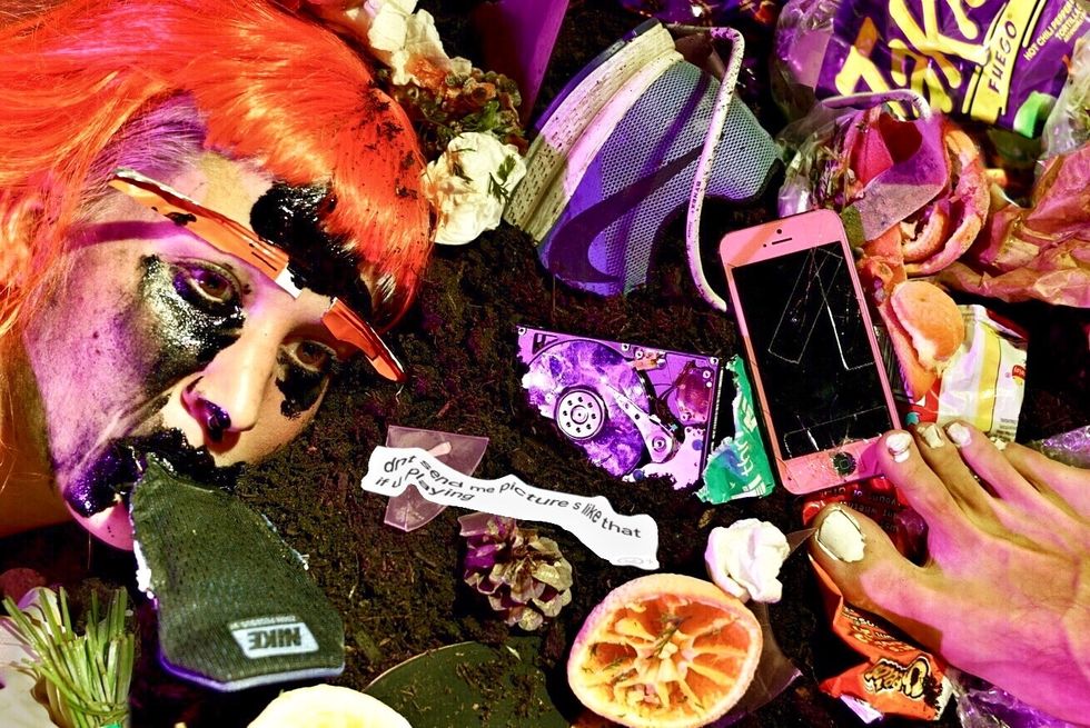 This dystopian vision of the future is the point of departure for photographer Sasha Gransjean's new series, Trashy Selfies. "Selfies to me are a form of digital trash because they already outnumber the world population by a hundred times, so what happens to all the data? How are we going to differentiate our 2022 selfies from the homogeneity of 2015?" Gransjean explains. "I've only ever lived in big cities where the remnants of capitalism are physically visible in the streets. I guess that's part of why trash has always had an appeal to me."