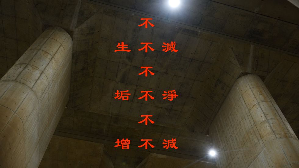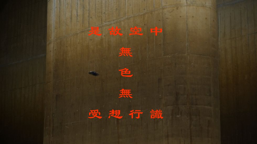"Personally, the narrative of the video is of emotion and its direct relationship with the body in the process of dissolving separation," Kanda says. "Relentlessly looking into direct experience — with patience, with love. The typography that is arranged over the video is the Heart Sutra from the Buddhist tradition which correlates to this process."