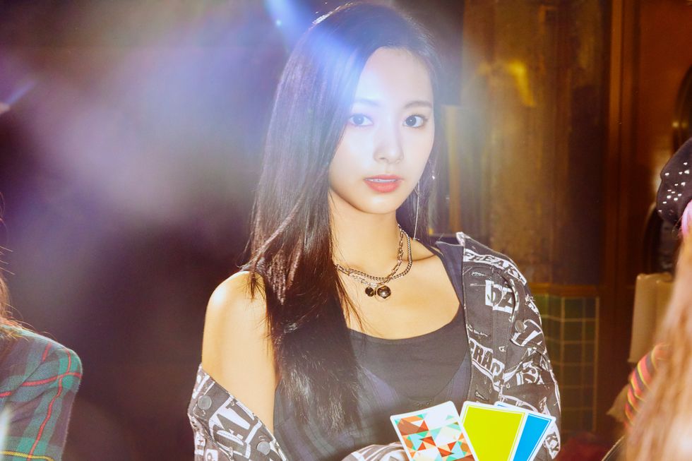 The concept carried through in other elements of the new album too. The accompanying visuals attached to the record see the TWICE women in bold plaids and imaginative animal prints, sheer tops and peeky skirts, all pulled off with a sense of allure and confidence. Meanwhile, the choreography showcased in the music video and live performances delivered some of TWICE's most athletic and energetic to date with their nine-member formation blending mid-air kicks and punches with fun-to-follow arm flapping. Even seemingly small moments (like youngest member Tzuyu rocking a menswear-inspired top or the surprisingly seductive chauffeur look from TWICE's chic Jeongyeon), all point to the group changing eager to spice things up while maintaining the elements that have kept them so successful in their three years together.
