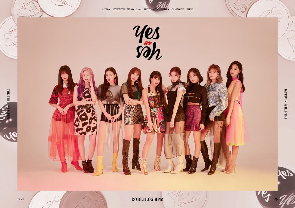 At the top of November, South Korea's leading girl group returned to the K-pop scene with a noticeably sophisticated image for their Yes or Yes album. Prior to this new release, the nine-member outfit had racked up a remarkable, eight consecutive No. 1 singles, mostly playing off a sweet and friendly image that's spanned everything from energetic cheerleaders (see their 2016 breakout hit "Cheer Up") to extraterrestrial supergirls (2017's snappy "Signal") and Disney-like princesses ("What Is Love?" from earlier this year). But upon the late-October announcement of Yes or Yes — TWICE's third Korean release in this year alone — there was a noticeable shift.