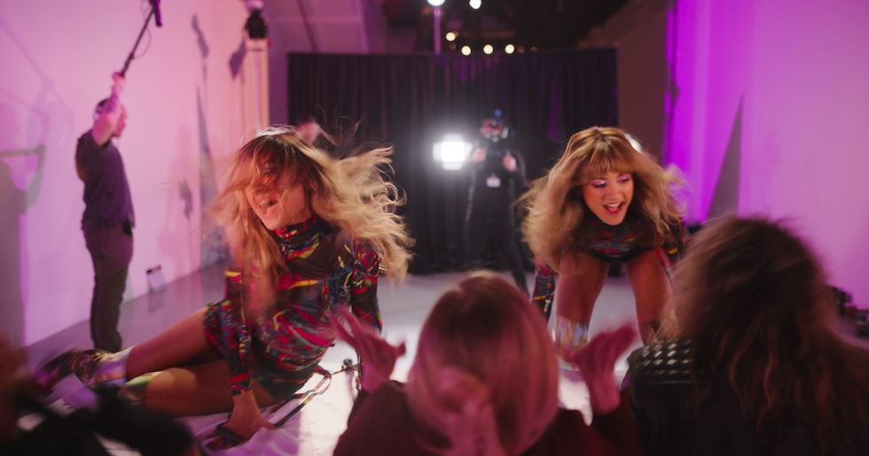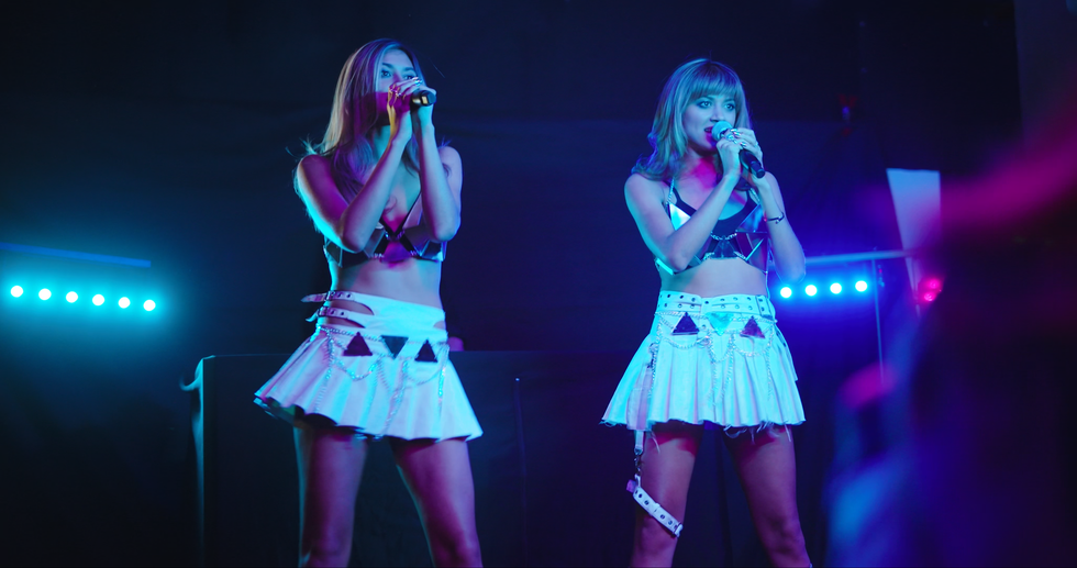 It is performance art, in a way. To make a Lady Gaga comparison again, the duo taps into the singer’s early The Fame era ethos, taking internalized fame and projecting this energy out into the world to make it a reality. Their latest single, “Bubblegum,” is another high-concept production about a fictitious social media app called “On Tha Clock'' that the girls are forced to participate in instead of being ‘real’ artists. Last month, they were even on American Idol, chatting it up with Ryan Seacrest in their signature latex jumpsuits. “There’s always only one person that goes on,” they tell me. “From the beginning, [the producers] asked us a lot of questions about whether we’d compete against each other.”
