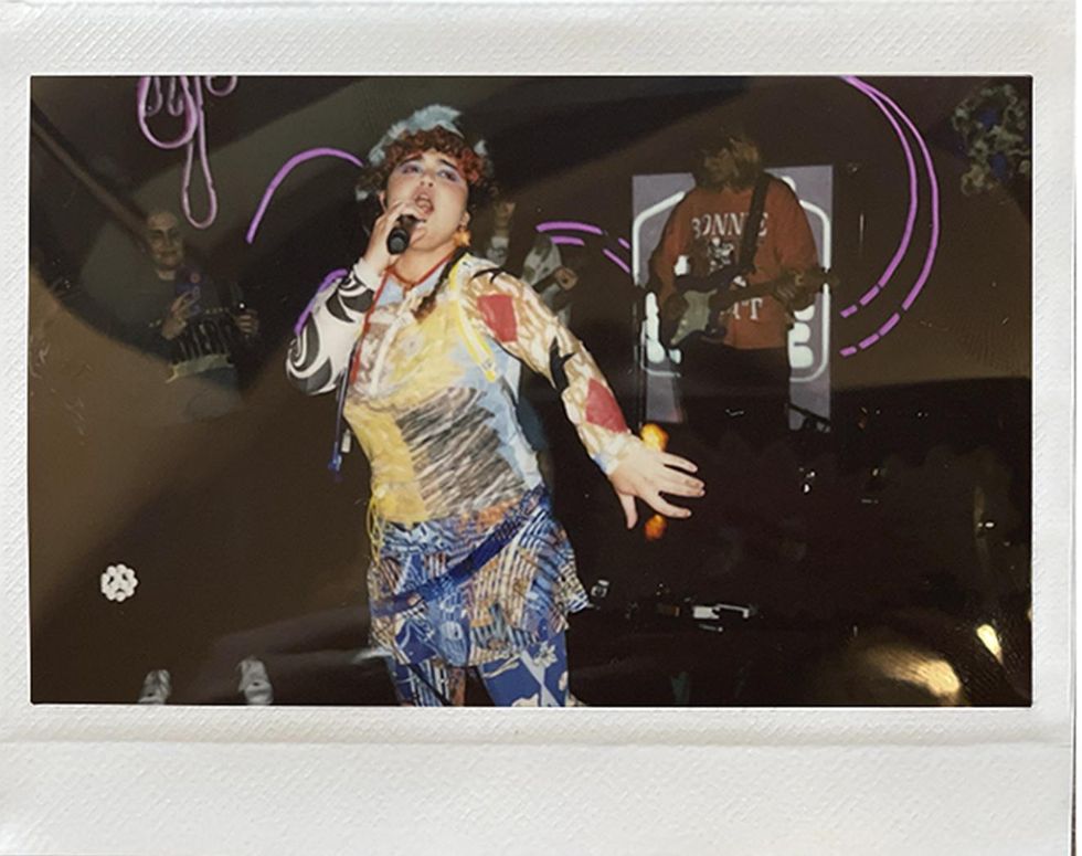 Wolf, who was the special musical guest for the first night, would jet off the next day for Lorde's five-week North American tour. She was wearing a Chopova Lowena top, Issey Miyake skirt-pants, a furry Prada bucket hat and, of course, red slip-on shoes by UGG. "Textures, patterns, jewelry, layering, all my typical shit," she says.