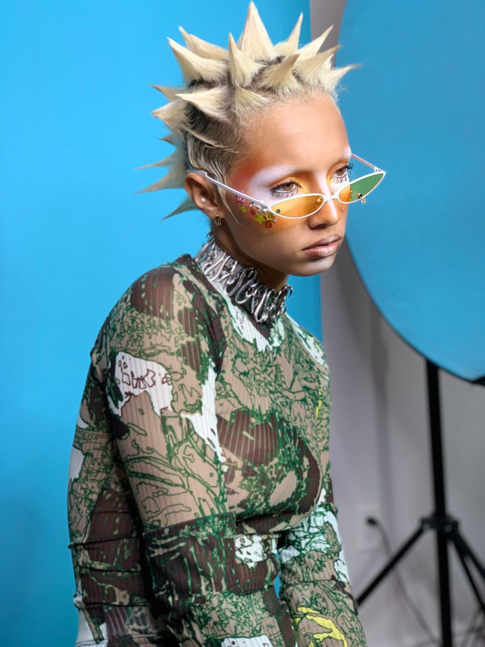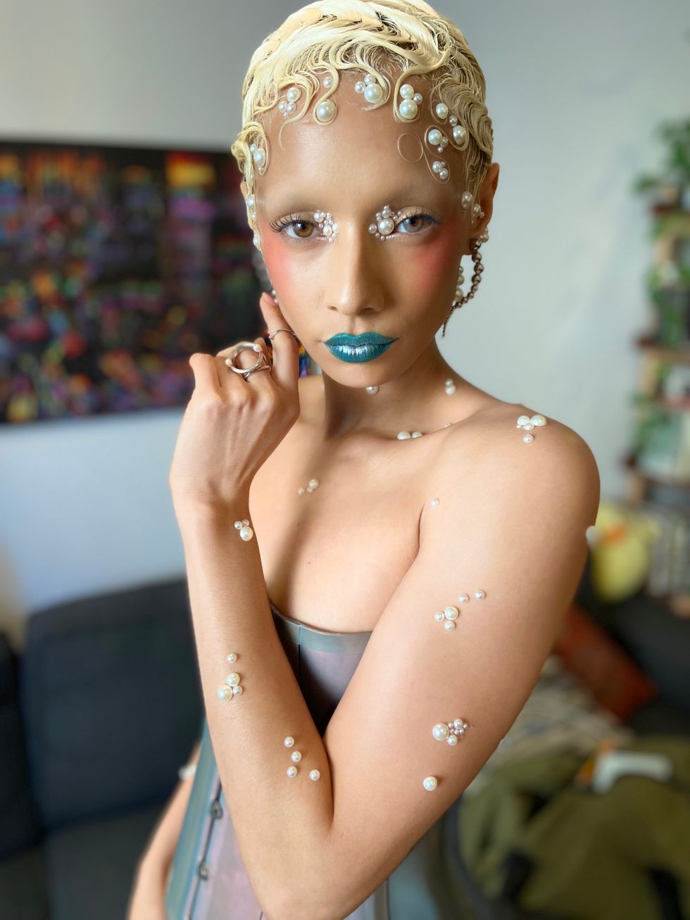 Uglyworldwide's subversive approach to fashion is just one of the reasons she's been a longtime muse to Chris Habana, the jewelry designer based in New York's East Village neighborhood known for his luxe pieces imbued with punk and tribal iconography.