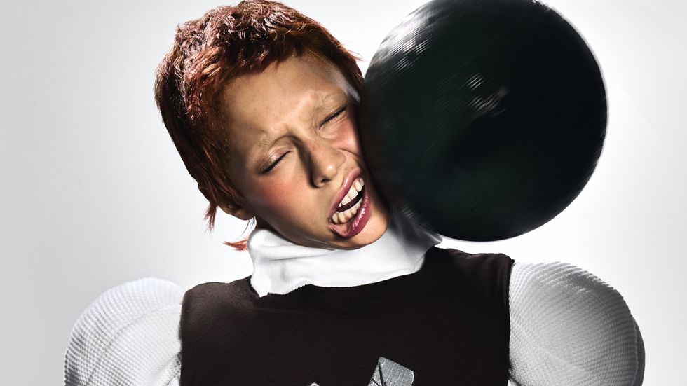 Since breaking into the fashion industry about 10 years ago, Jazzelle has felt like they’ve never quite been included. Still, they made a career out of it, despite how cliquey and how gatekeep-y fashion can be unless you're being tokenized. "Within my actual life, from the jump, I've been a little bullied kid my whole life — very nerdy, very dweeb-y, taking the fucking punches," Jazzelle tells PAPER. "So with this shoot, I wanted to shine some light and give some power to being an outcast. Hold strength despite all the punches and all the things that people can throw at you. This is for all the girls who called me ugly in high school. You were right."
