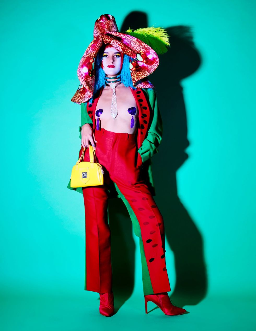 Hat: BCALLA, Suit: Vintage from The Last Follies Closet, Choker: BOND HARDWARE, Jeweled Tie: The House of Phil, Handbag: HARDEMAN
