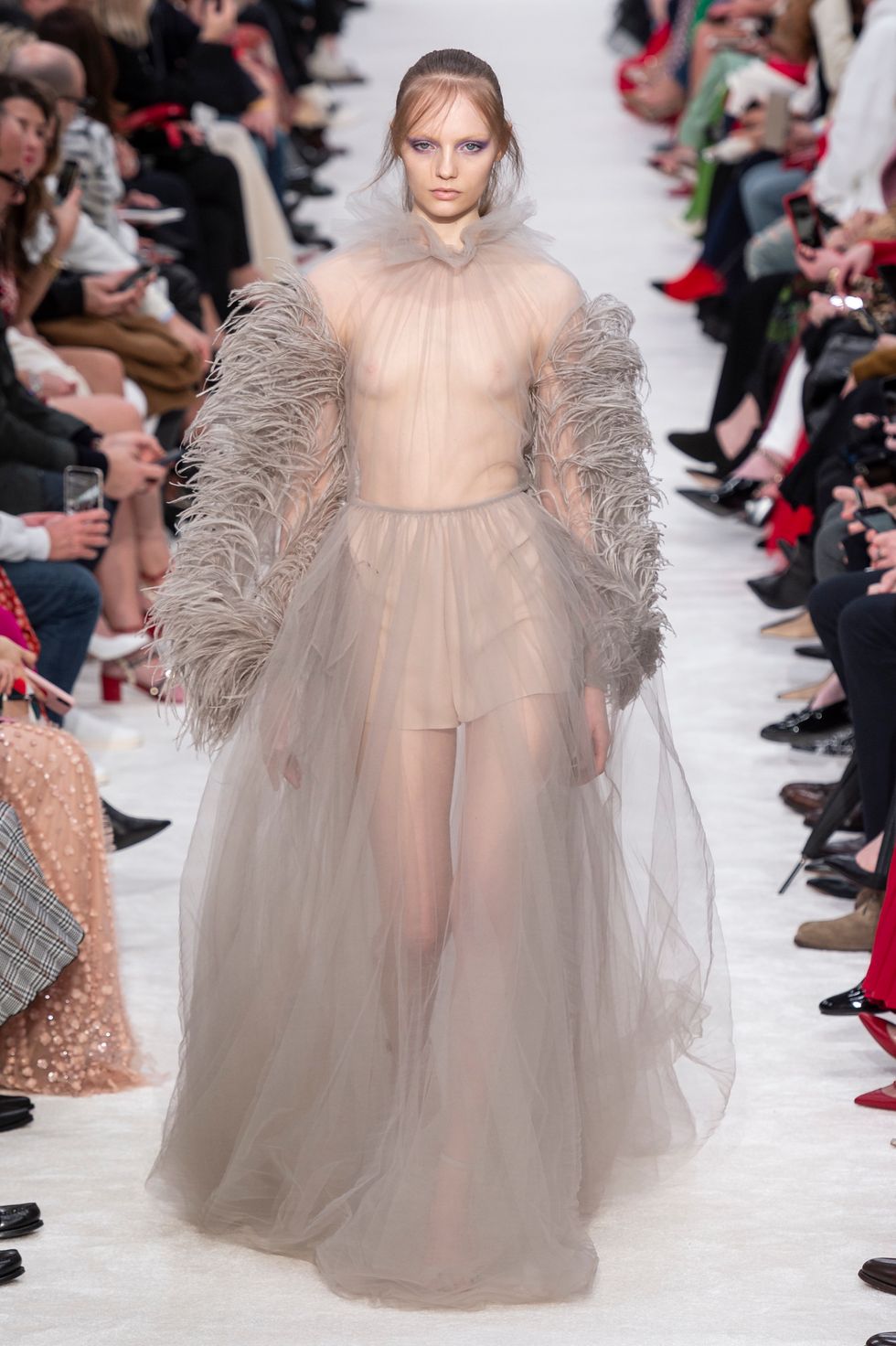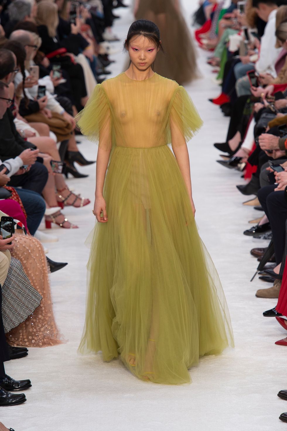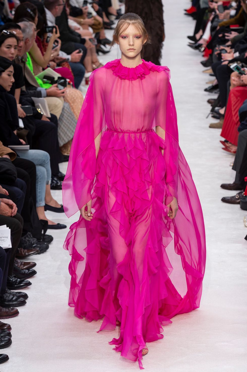 Following the success of Valentino's recent couture shows, the label spun out magical creations for ready-to-wear that looked as if they could be couture. This all came in the form of beautiful, sheer gowns near the end of the collection.