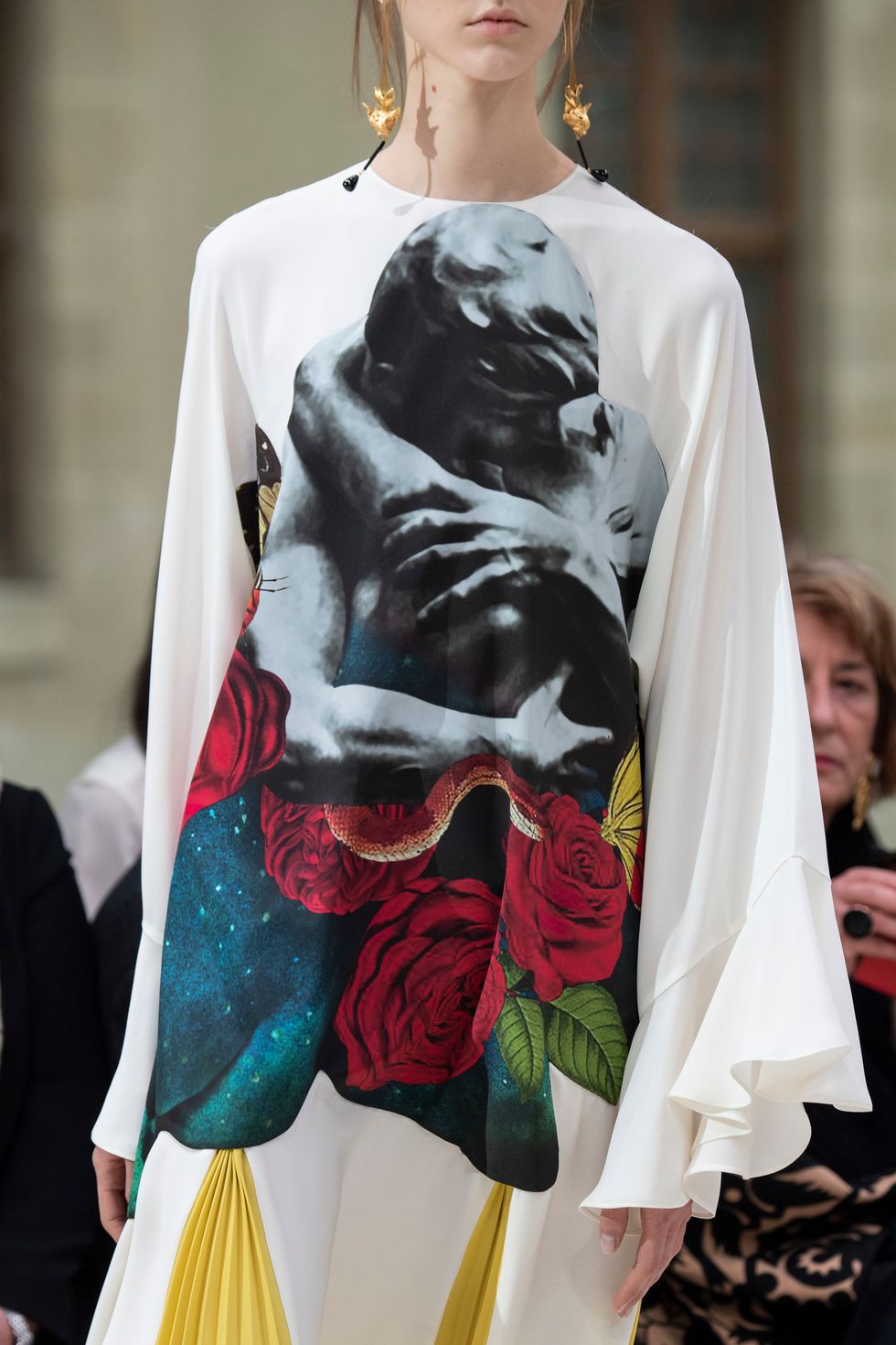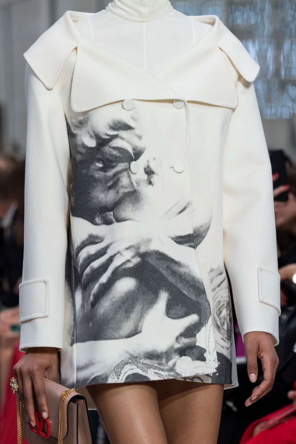 Valentino once again collaborated with Jun Takahashi, of Japanese label Undercover (they first worked together for Valentino's most recent menswear collection). Neoclassical statue figures and roses punctuated the collection.