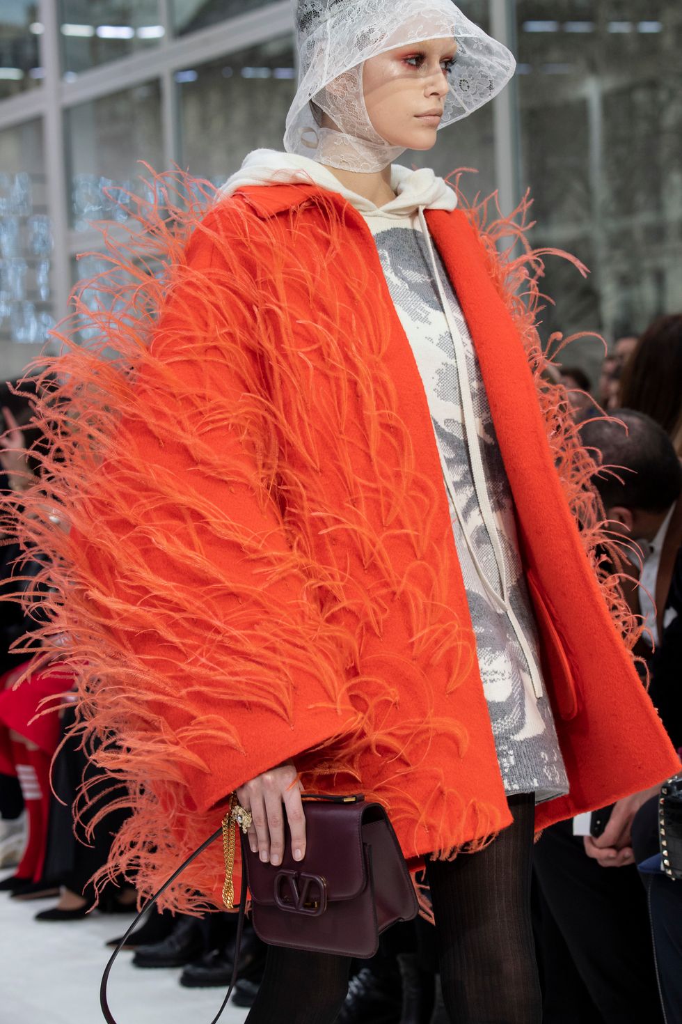 A number of short coats that looked like they were super easy to wear made the collection feel more youthful. An orange one with feathers was a standout.