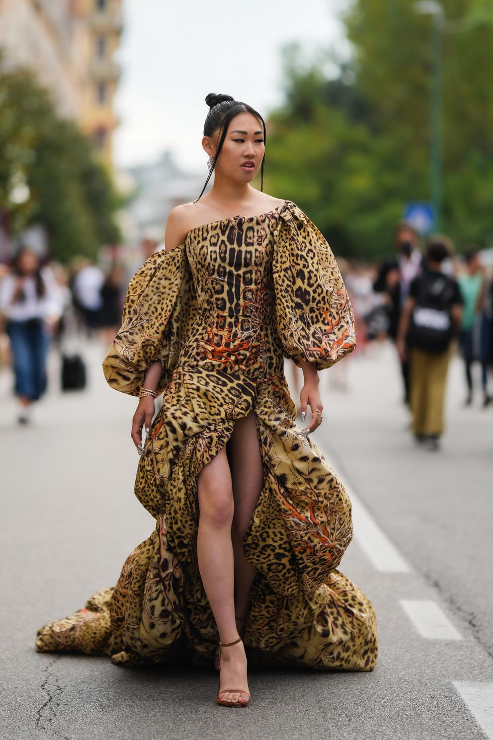 So how did Venice turn the tables over Cannes on the fashion front this early in the proceedings? It helps that Dune and Spencer, two of the most anticipated movies, premiered there, allowing for the world to have multiple looks at stylish stars like Zendaya, Stewart, and Timothée Chalamet. You also have stars like Bling Empire's Jaime Xie, who you wouldn't normally place at at an event like this but nonetheless radiated in an archive Roberto Cavalli gown. We also learned here that she's now working with Law Roach, a double treat!