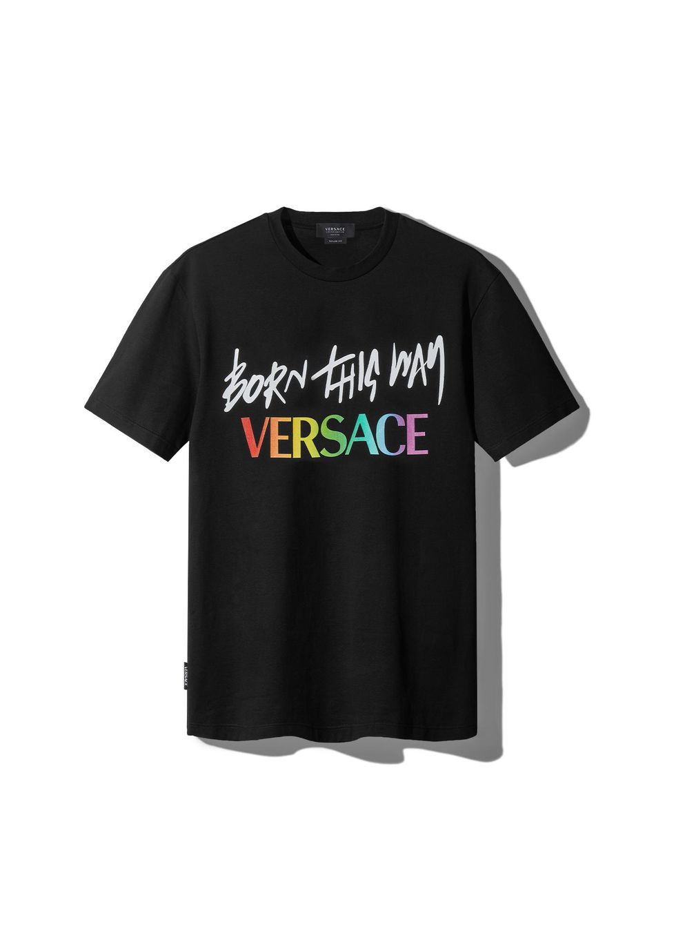 Alongside the charity auction, Versace is releasing T-shirts and berets featuring a mutli-hued logo to show the world that they stand with queer icons forever and always. (Donatella memorably joined Gaga during World Pride 2019 at the Stonewall Inn.)