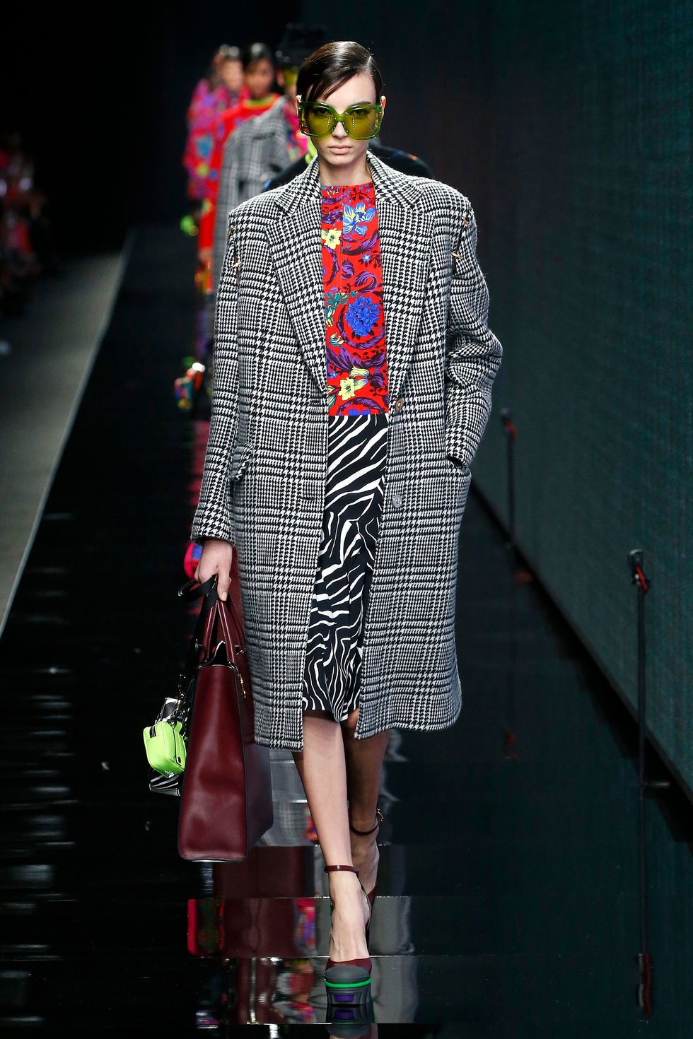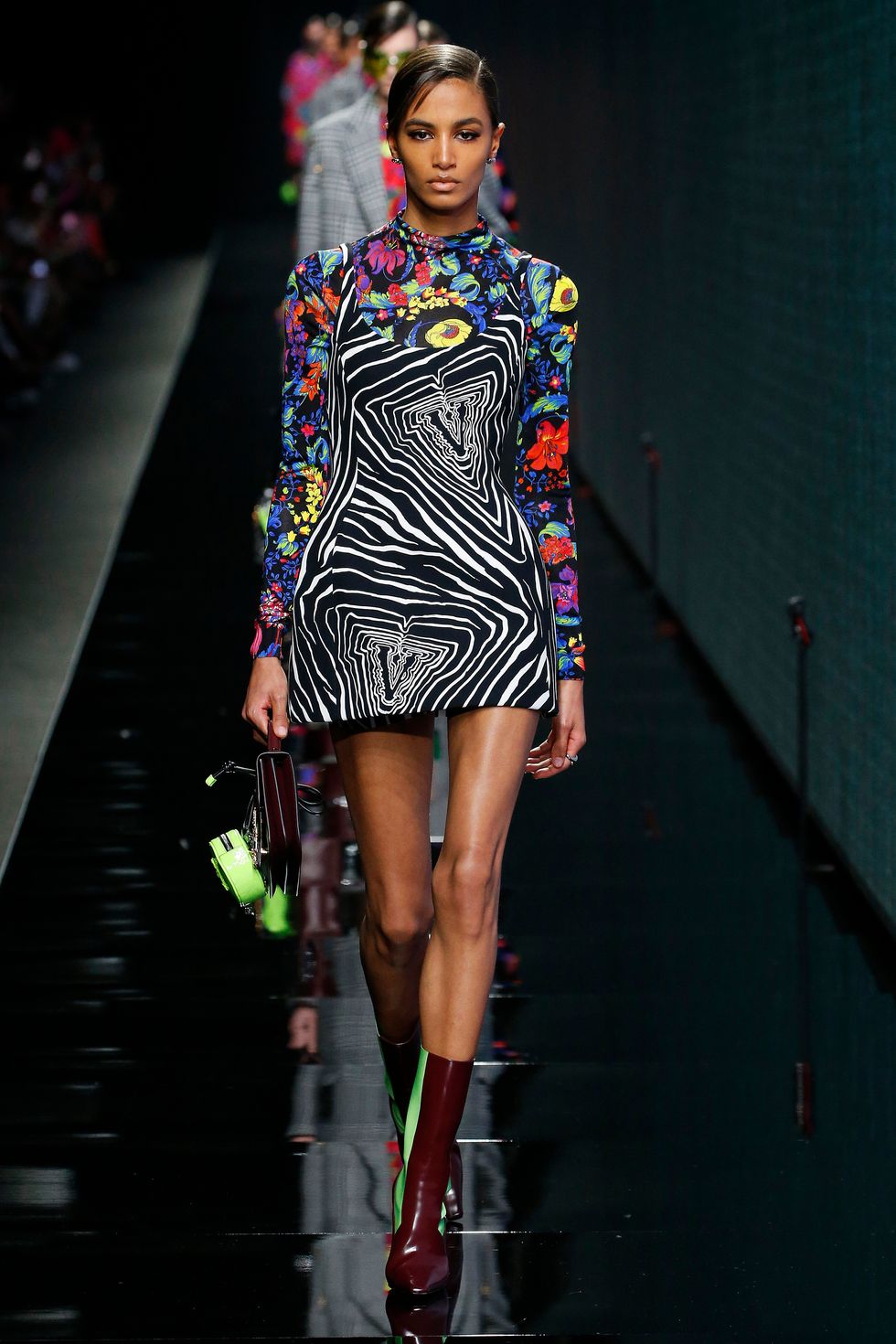 There was also a strong focus on handbags, with various sizes and shapes in prints like houndstooth, zebra and neon all worn simultaneously at times. See, below, to watch the entire Versace Fall 2020 show.