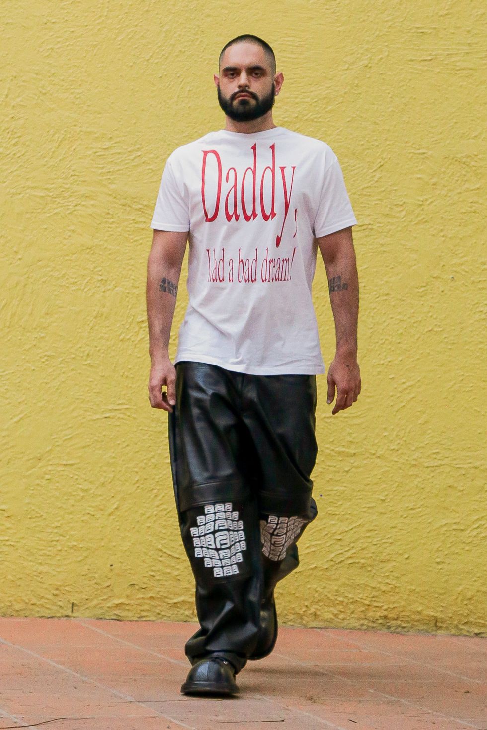 "I think my design process is now even more considerate of wearability and signature brand moments," he wrote. "However, conceptually, I still remain very true to my personal experience and try to tell stories from my background." He hasn't lost his edge, or sense of humor: one male model sported a shirt reading "Daddy, I had a bad dream!" in blood-red stretched serif font paired with sagging leather trousers, a look that just screams trade. Daddy's boy may have had a bad dream, but the show was a good one.