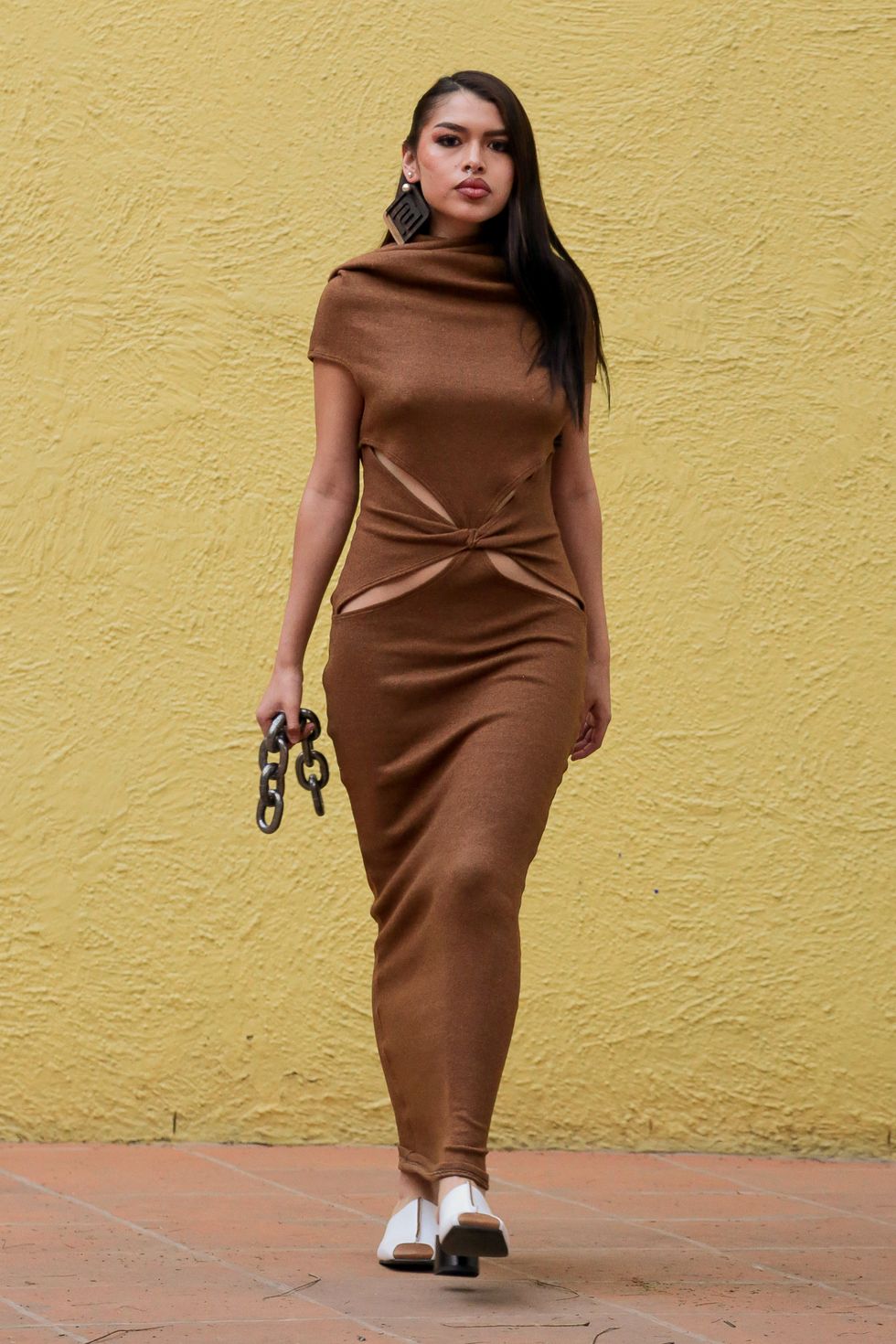 "I wanted to interpret the history of Mexican brujería of the 16th century, when brujas used sexuality as power and protection, mixed with the whimsical magic of wizards and jesters," Barragán wrote. "I feel there's a sense of women empowerment, when they can look and feel sexy without judgment. You can see this interaction in our sexy dresses, as well as oversized power suits, this time incorporating a hood of mysticism."