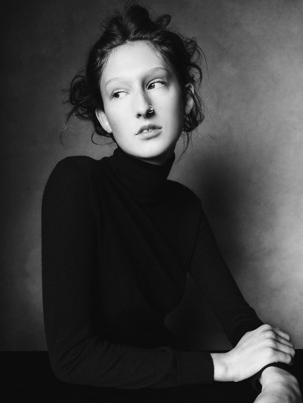 Tessa Bruinsma wears a turtleneck by Christian Dior