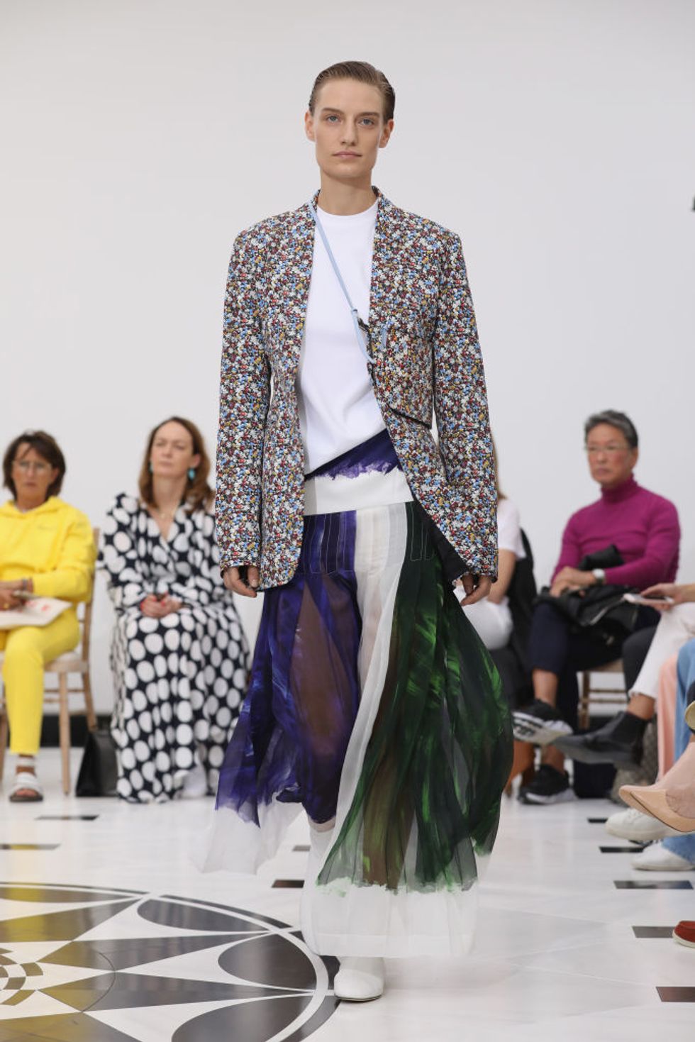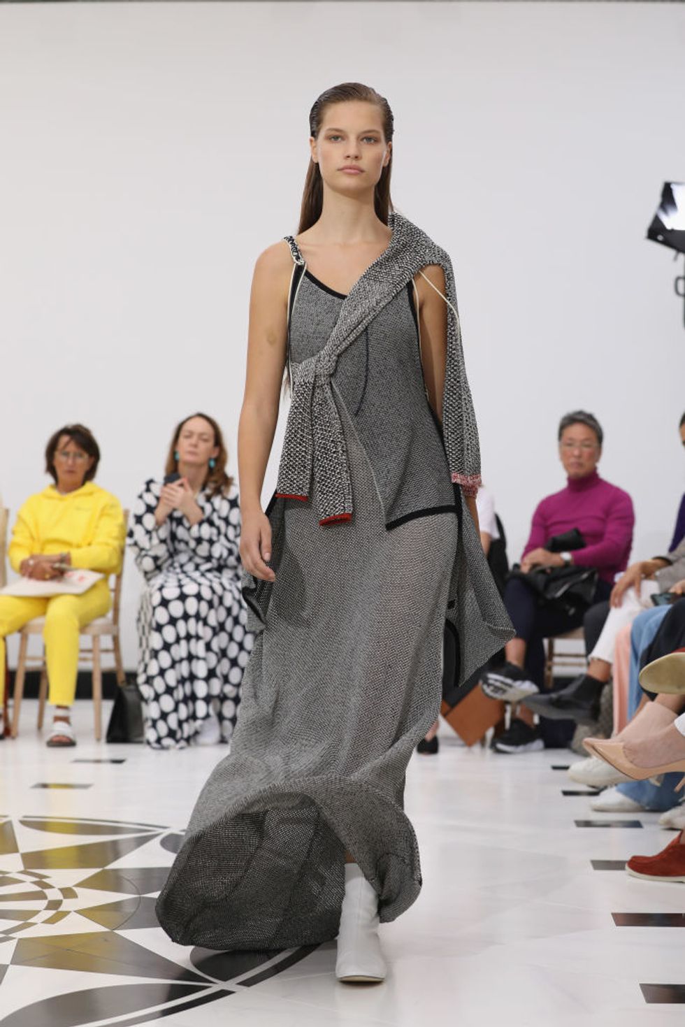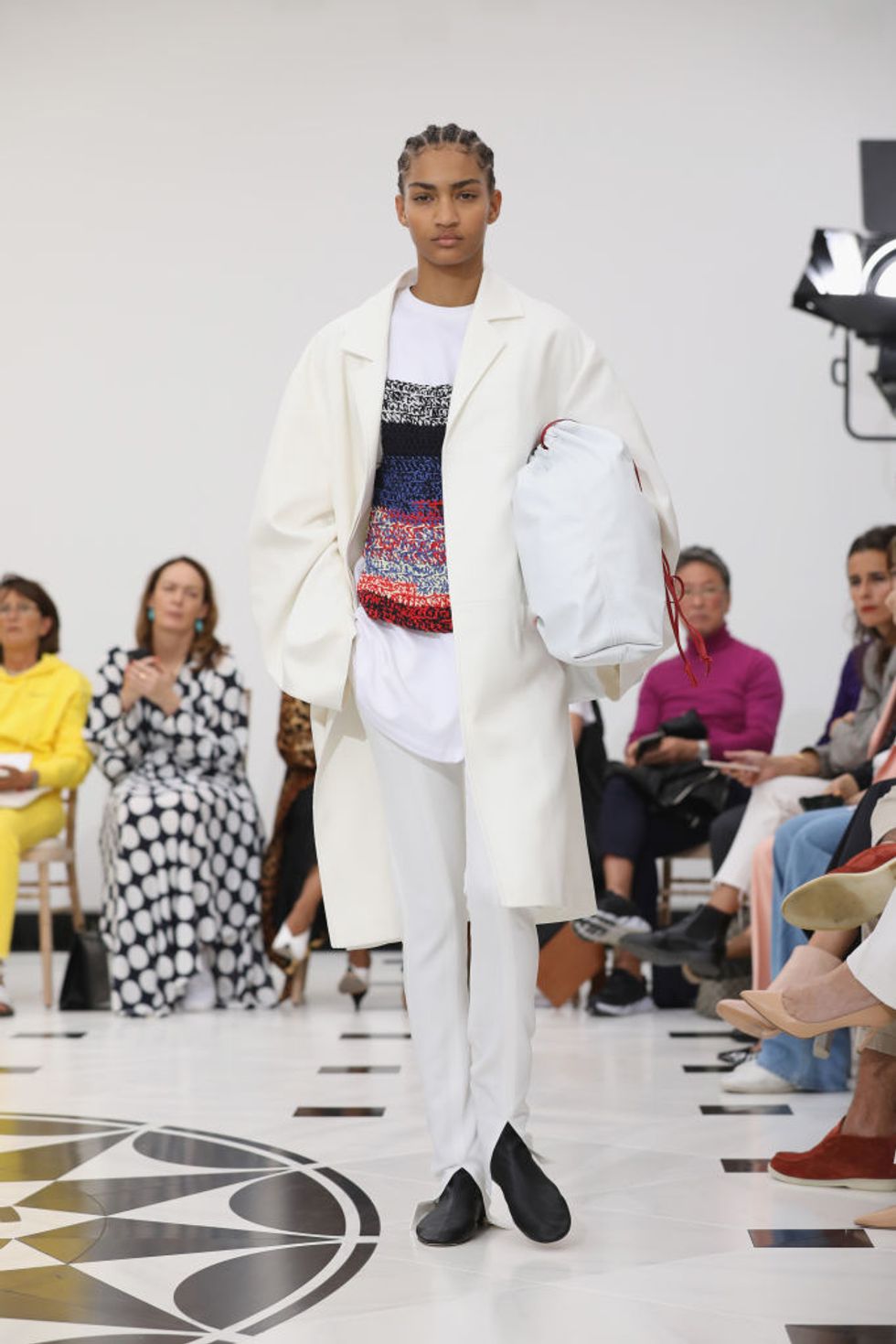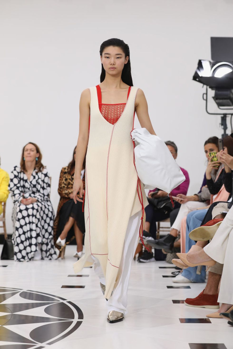 The fashion-forward looks featured in the show were a mix of flowy silhouettes, clean tailored cuts, and a bit of lace. But the signature recurring look that weaved through the whole collection were long, straight trousers with a slitted bottom paired with boots. See all the runway outfits below.