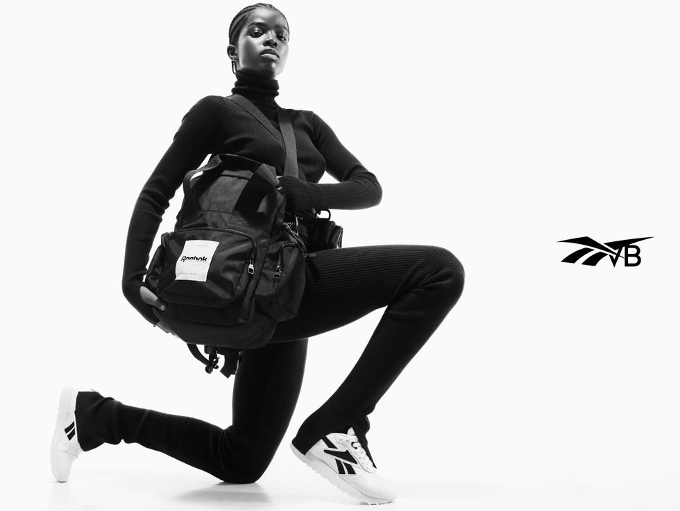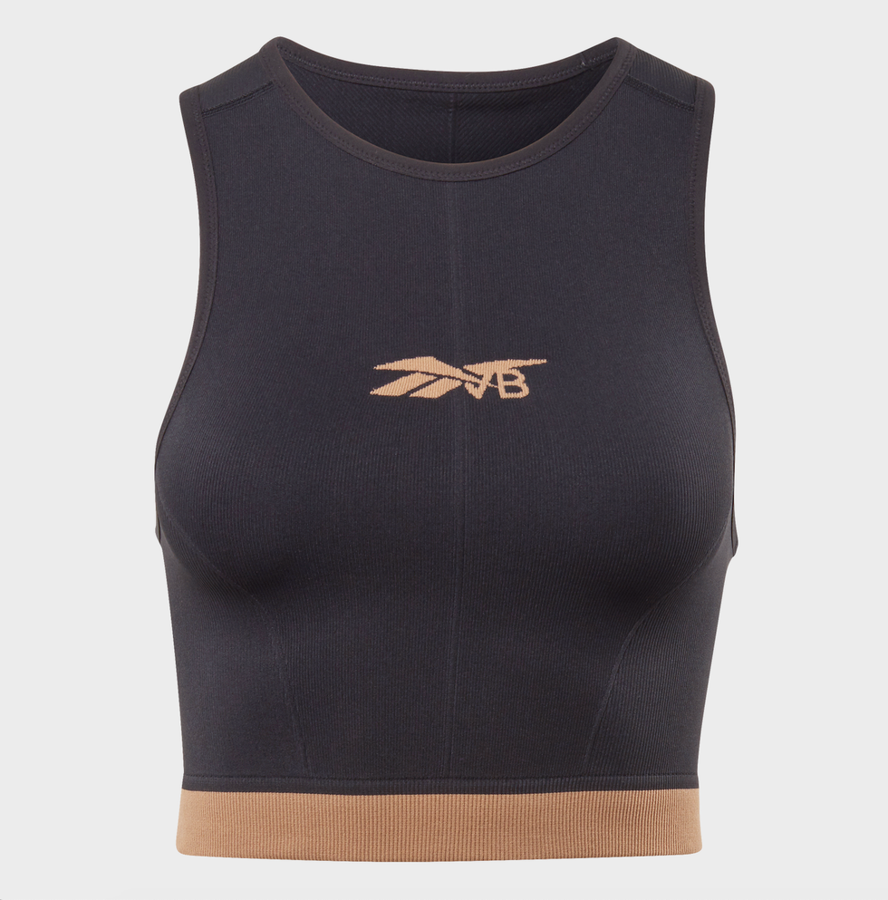 Since Beckham's first Reebok collection debuted in 2018, the line has expanded into new categories, which this season include convertible totes, mini bags and a range of "seamless" crop tops, skirts and tights all knitted in one piece to avoid seams splitting during workouts.