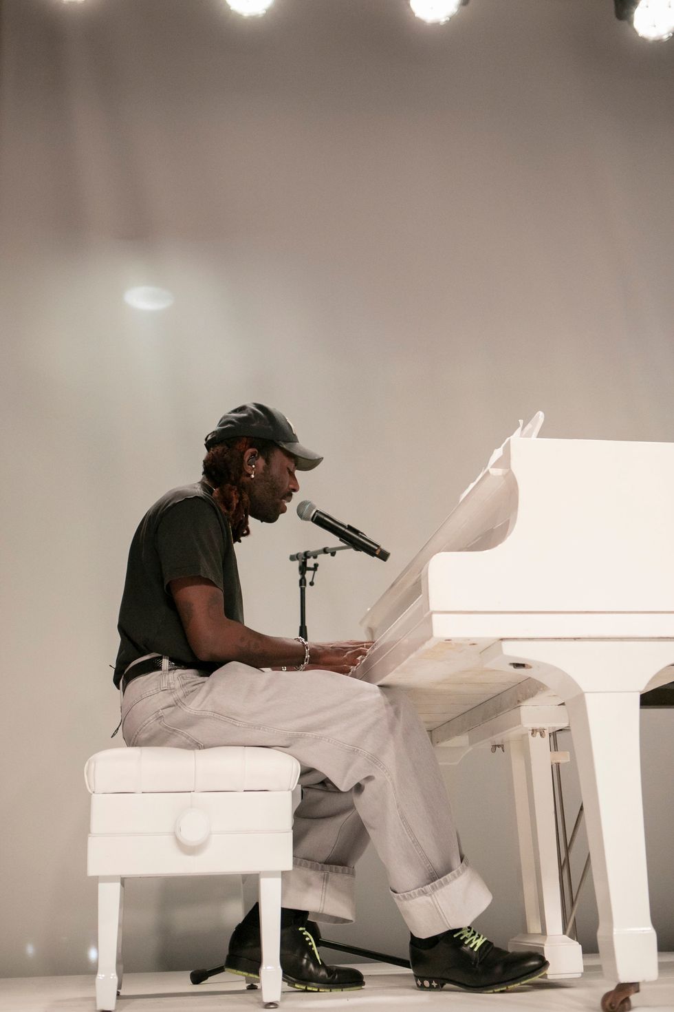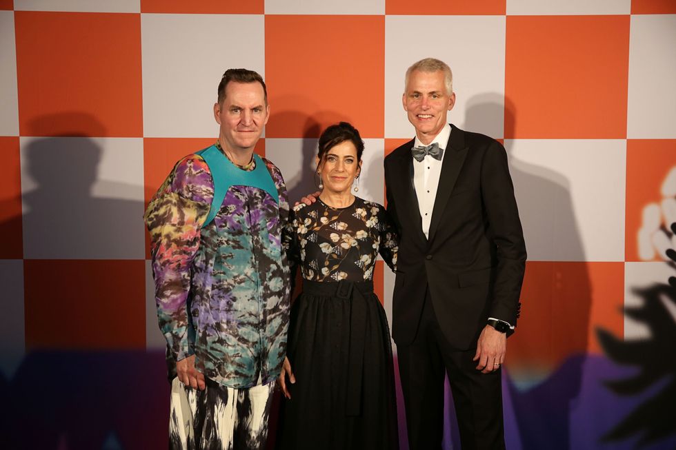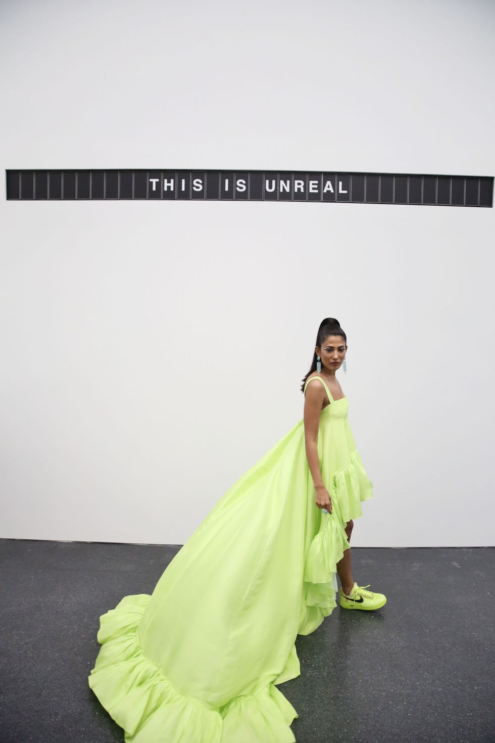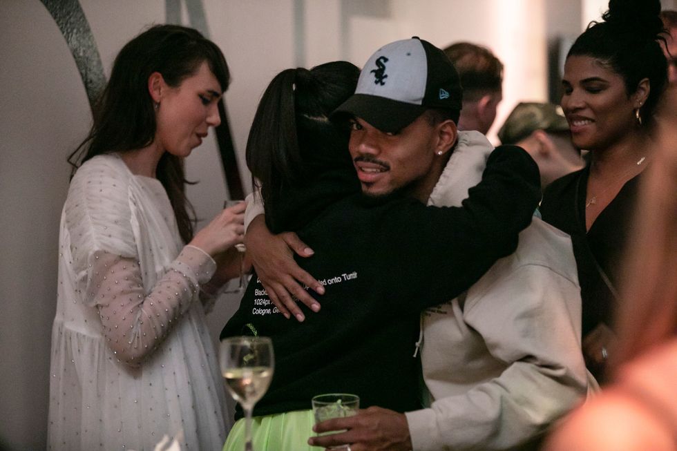 But before swarms of hype-beasts were allowed to descend upon the MCA, a select few were treated to a sneak preview of the show as a part of the institution's ArtEdge gala. The night featured a performance by Dev Hynes along with appearances by collaborator Takashi Murakami, Chance the Rapper, Nick Cave, and curator Michael Darling. True to industrial-form, Abloh kicked off the evening in the museum's parking garage, taking guests through the loading dock and up the freight elevator to the traffic cone-adorned reception hall. There were even orange white macaroons!