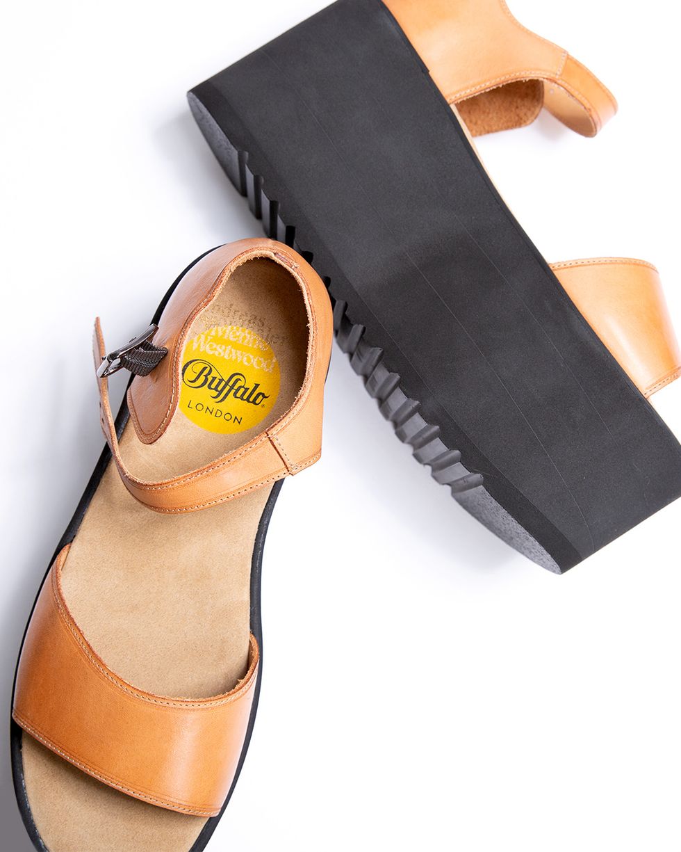The other style in the latest drop is The Connected Sandal Platform, which is pale tan leather and with ankles straps on a black platform inspired by Westwood's original Everything is Connected Sandal from the spring 2014 collection.