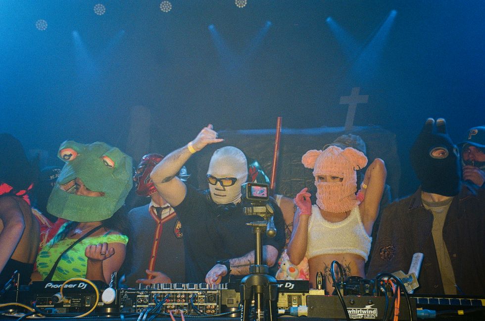 Antide, with his entourage of freaks, armed with hammers and swords, destroying the CDJ’s... literally.