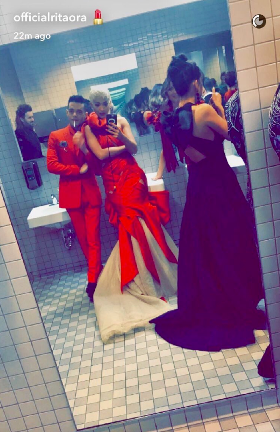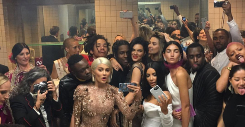 Because of the annual selfie ban, instituted in 2015 because Anna Wintour hates them and presumably also because the process itself is a largely cringe and narcissistic cultural tradition, celebs have been congregating in the (unisex???) bathrooms to get their fix. But documenting their experience isn't the only thing everyone needed a hit of, turns out everyone was craving a lil nicotine – also banned. Who even smokes anymore? You ask. Well actually, EVERY CELEBRITY WITH COMPROMISING PAPARAZZI VACATION PHOTOS AND "LOTS OF PROJECTS ON THE HORIZON". That's who.