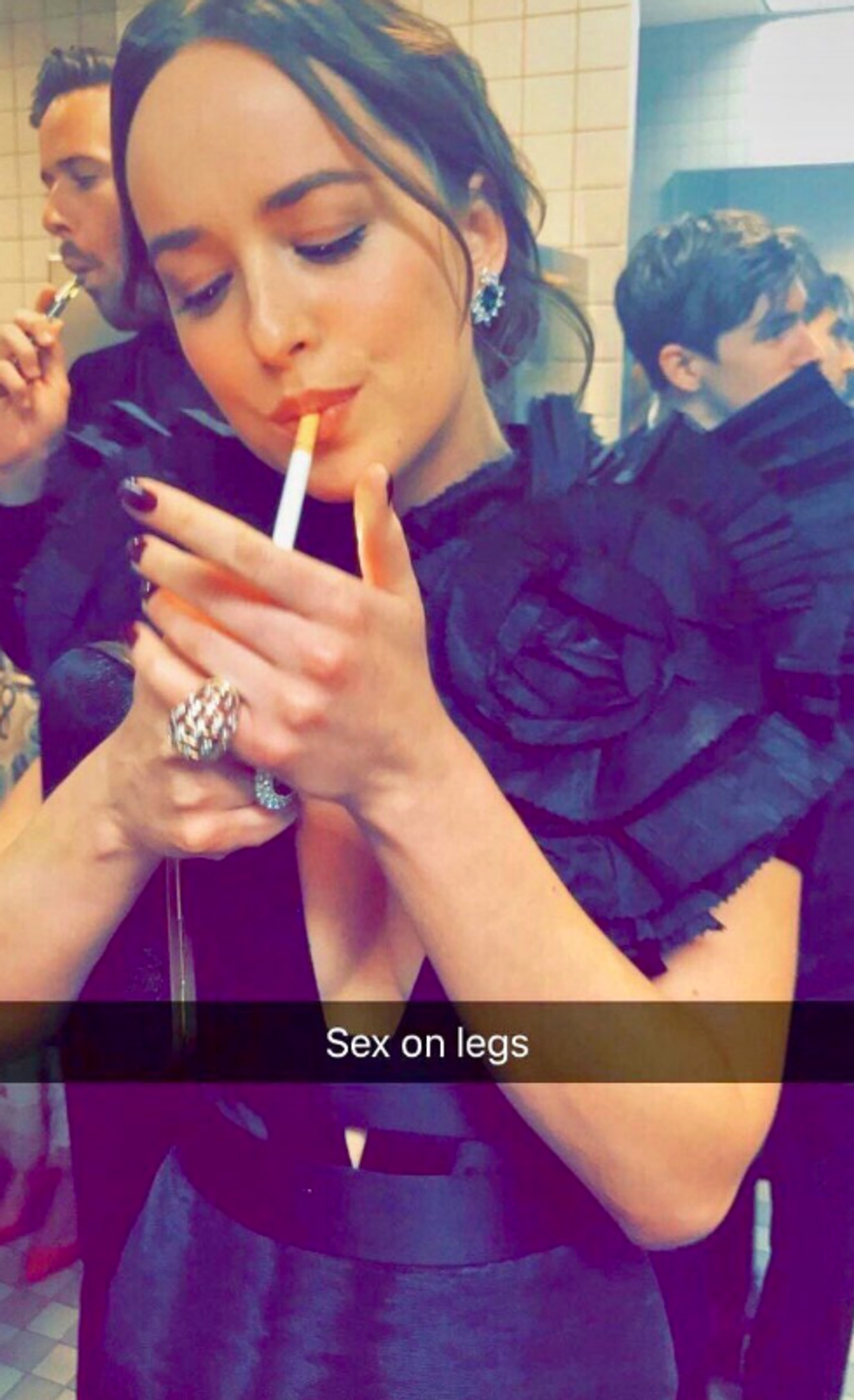 Someone still using Snapchat was compelled to catch Dakota lighting up.