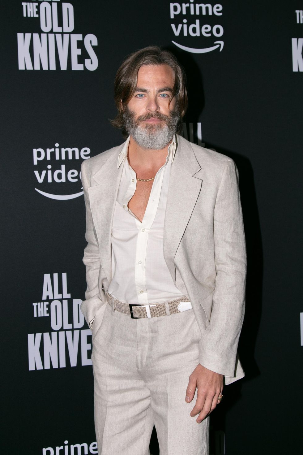 The look in question came atop a cream Sandro suit, styled by Wendi and Nicole Ferreira, at the premiere of his new film All the Old Knives at The London West Hollywood in Beverly Hills. Some saw at cosplaying disco Leonard Mccoy, while others felt it was giving "cult." I see it more as an "excuse me sir, how dare you?" in managing to both perplex and titillate. But hey, I’m of the school of thinking that Pine is incapable of looking anything other than DILFy, a particularly notable accomplishment in that he is not even yet a father.