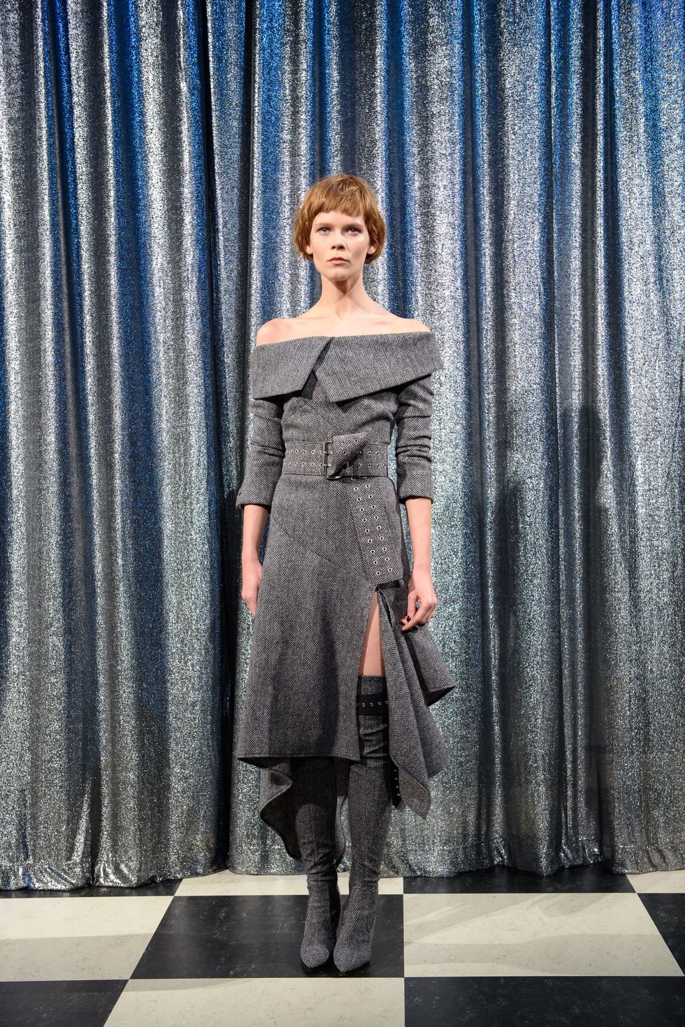 UPDATE: She wore the gray deconstructed herring bone Monse.