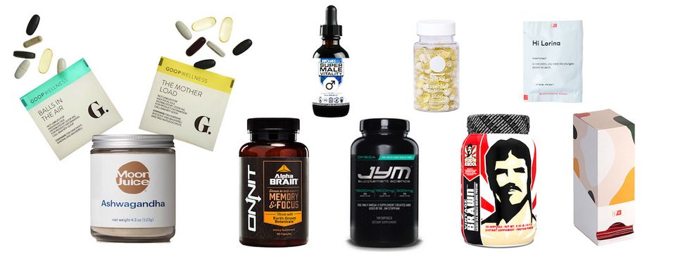 A survey of some of the more high-profile new brands out there shows the breadth of choices consumers have. You'll encounter brands like Ritual or Care/of whose clean packaging wouldn't feel out of place in a medicine cabinet alongside a bottle of Glossier's milky jelly cleanser or on a nightstand next to your Casper mattress; goop Wellness, a spin-off of Gwyneth Paltrow's goop blog, whose chic little protocol packets can nestle in the bottom of your Mansur Gavriel bucket bag; Moon Juice, whose cosmic DIY vibes, hand-drawn font and upmarket price points conjure lighting some $20 palo santo incense and making homemade all-natural face masks; Old School Labs, whose retro, Soviet propaganda posters-by-way-of Shepard Fairey-style packaging would complement that pair of Chuck Taylors you recently started wearing to lift weights at the gym; JYM, Onnit and Kion, whose sleek, utilitarian bottles can provide the pre-workout fuel needed before you begin a new regimen you heard about on a podcast by one of those brands' founders, Jim Stoppani, Joe Rogan and Ben Greenfield, respectively; InfoWars, whose in-your-face packaging and frenzied messaging would feel right at home on a shelf in that bunker you're building after hearing about the impending apocalypse from — who else? — far-right conspiracy peddler and the brand's founder, Alex Jones; and more.