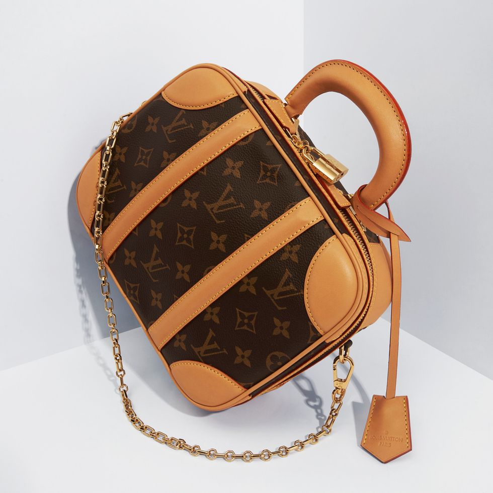 Louis Vuitton's Mini Luggage Bag may be small, but the craft that goes into it is unrivaled. Made of monogram canvas with natural cowhide leather carefully applied to the corners, strap and reinforcements, the bag comes with a sturdy leather handle and metal chain.