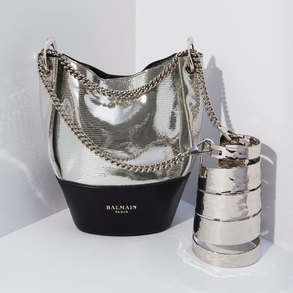 With its mirror-like finish, Balmain's new Polygon bucket bag comes with an added accessory: a bracelet that can be worn with or without the bag on its own. The bag is crafted out of calfskin and lined with Crosta, a durable kind of leather used for the likes of mountaineering footwear.