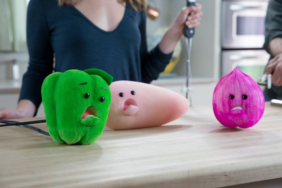 The only real challenge was how to approach the puppets. We wanted them to be the size of actual food, but also get transformed through the recipe. This created a unique build for each phase of the character. And each phase had its own set of challenges and solutions. A lot of what we were able to do was achieved by using small mechanisms inside the puppets instead of the puppeteers hand. Sal Denaro, a very talented puppet maker, was able to crank out multiple versions of the same character. Then we sliced diced and mechanized them as needed.