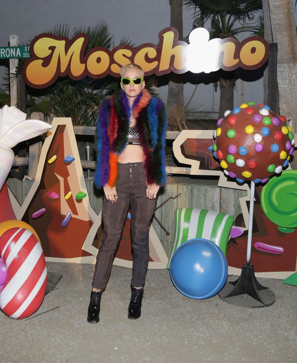 Look: Do you mean ~lewk~? I thought so. Katy oft catches onto trends two minutes too late rather than setting them. A severe drag, perhaps, but unfortunately true. I'm not sure what this Moschino shiny-pant-metallic-sports-bra-fur-crop is saying, but certainly not anything cohesive. Mind you, she take the cake for ~ extra ~.
