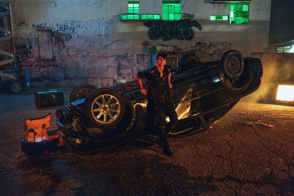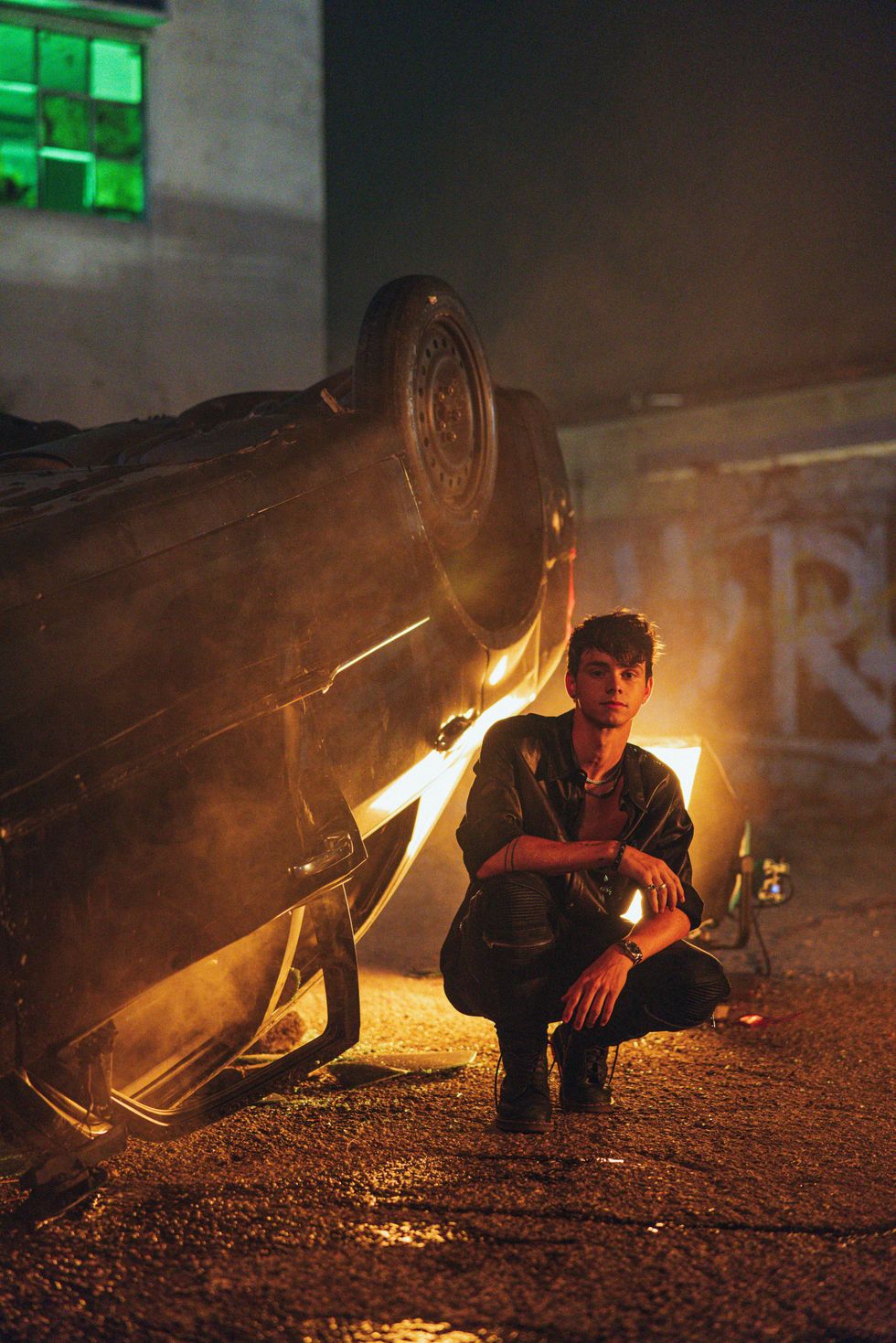 All members appear in situations that look like action films, either singing from a cell tower that is soon to be struck by lightning or atop a flipped car in a junkyard or even floating mid-air. The group joins together in one of the closing scenes, emulating the 1974 album cover of Queen's Queen II — black backdrop and all — with Avery's arms crossed across his chest surrounded by bandmates.