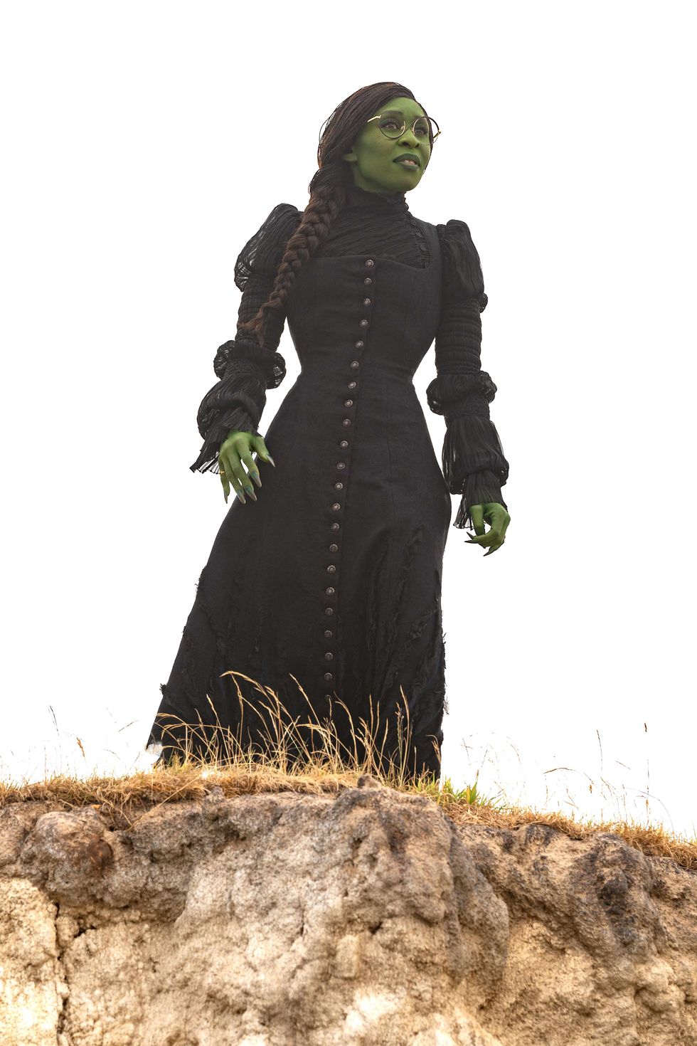 We see Elphaba as a child with her sister, so that we get to understand that emotional dynamic. We set her up as connected to nature and as the advocate of animals, and because of that, her pinafore and dress feel very organic. It's also black, which sets up the fact that she started wearing black very young. But we had to make sense of that decision. She's in mourning for her mother, and she holds on to that visual partly for protection. She is armoring herself because of the environment that she's in, and also to set her apart. The decisions are real so that we can understand them as an audience. That is the beauty of the film, as well, is that you have this fantastical world, but the emotions and relationships that are within it are very real.