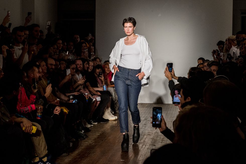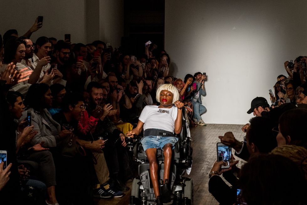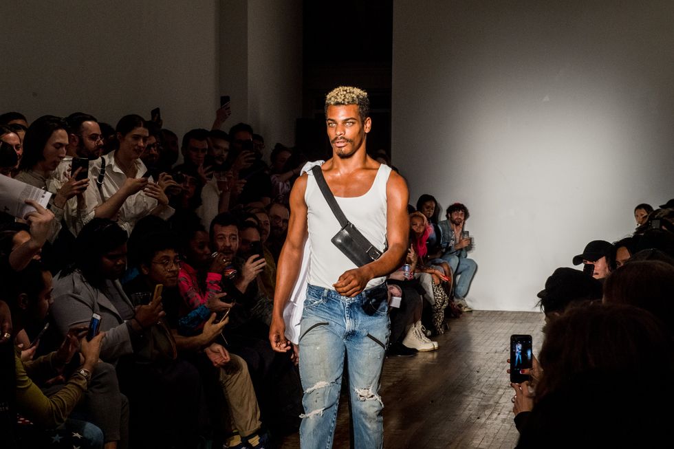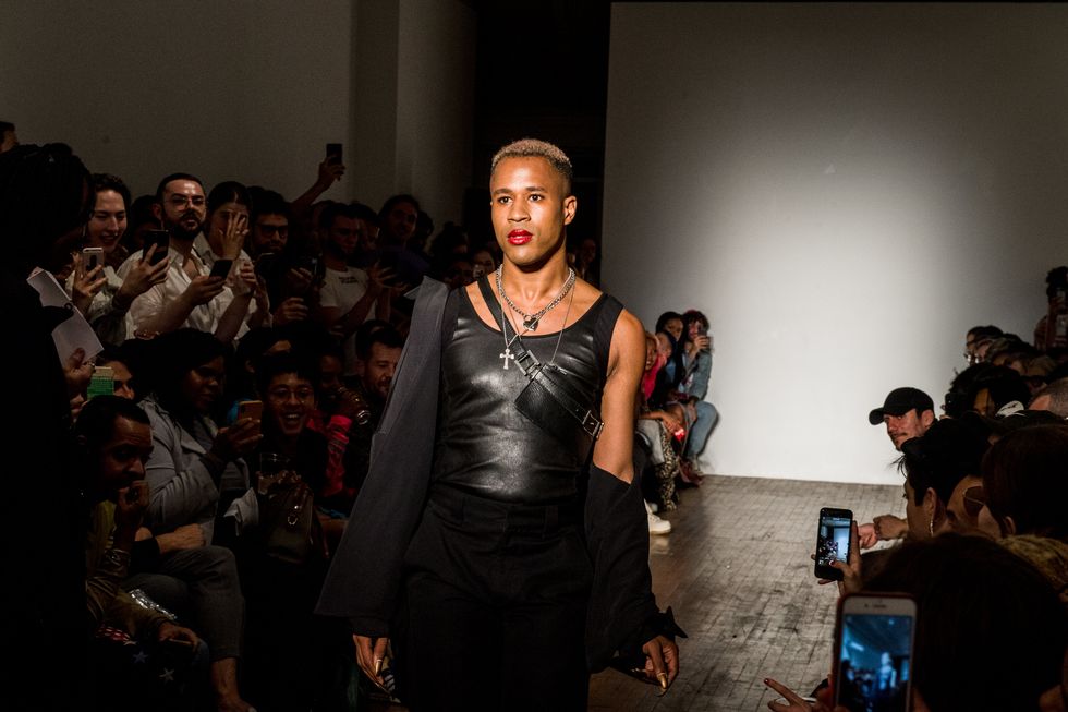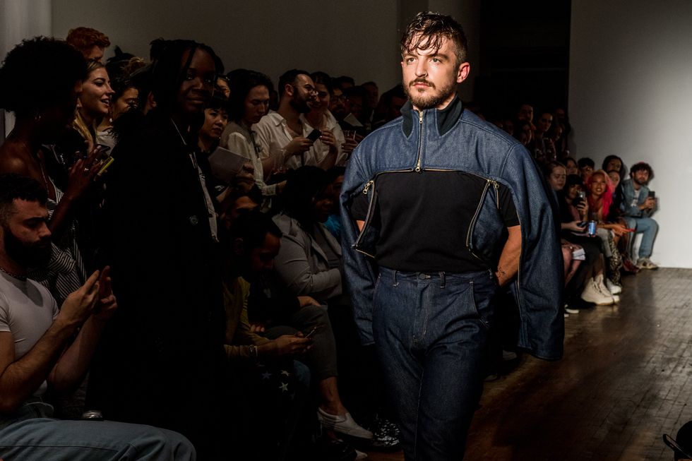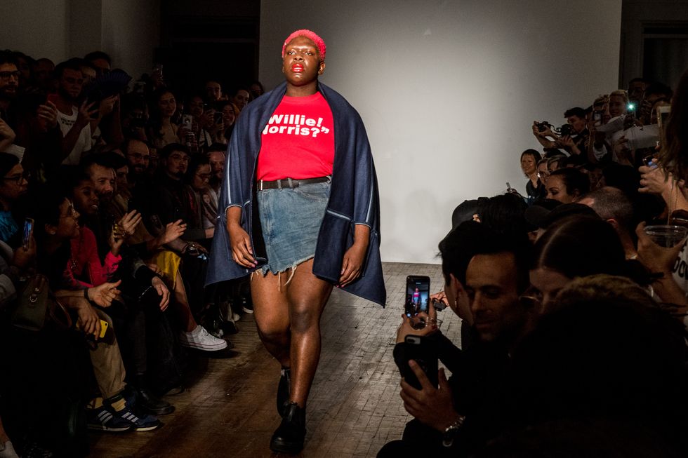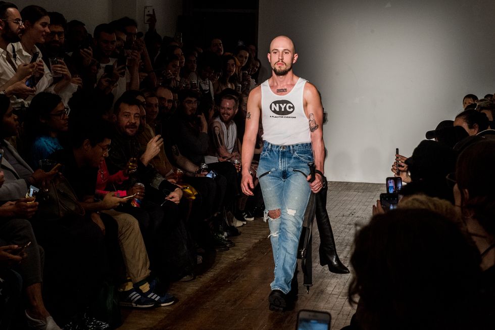 A runway full of stars, from Aaron Philip to West Dakota, guided by iconic runway coach and fashion show producer Lynn O'Neill. Then the designer who made it all possible, in an array of highly wearable (and marketable) '90s grunge-indebted clothes constructed with precision for all forms and all functions, with words emblazoned on them in bold type. It's all designed to confront then dismantle the phenomenon of phobia against LGBTQ people. Making them real and seen by others was a culmination of 10 years of Norris working at different capacities in the fashion industry. It's a dream come true from "growing up as a little faggot in New Hampshire," he says.