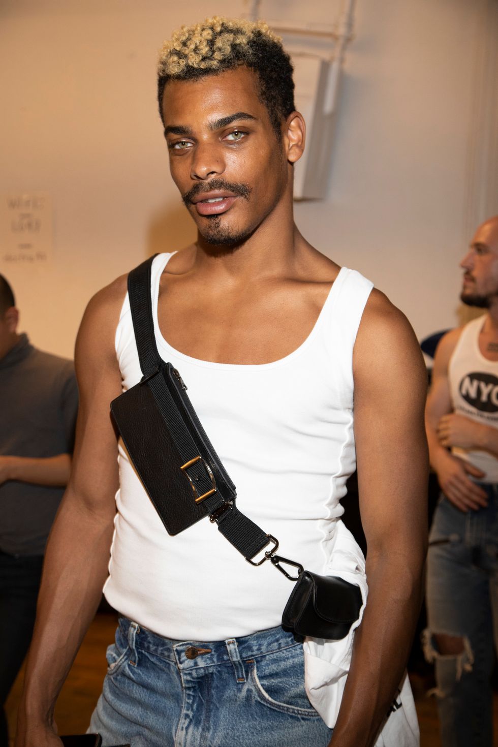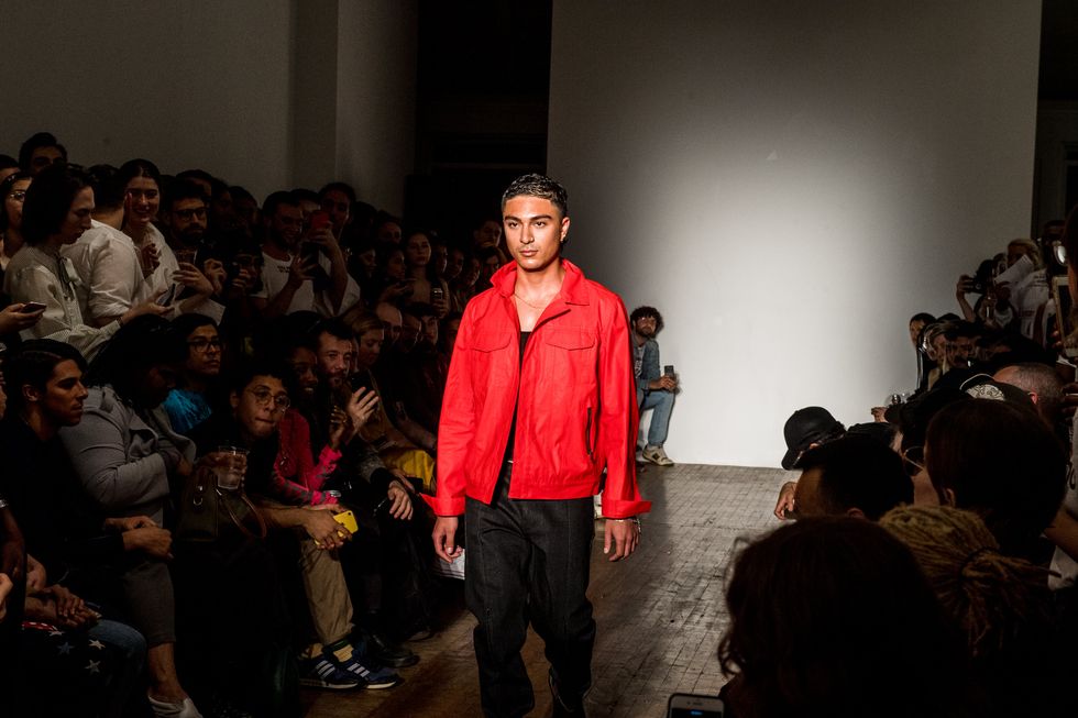 Exactly. I casted the models before I designed the collection, which is so ass-backwards to enter into the industry. And I had a gut feeling for what everyone would be wearing. I knew you would be in a tight undershirt with a matching, big blouse on top. I knew Nick would be in a black tank top with a red shirt. I knew Charlene would be in a red lip with something on the side. That's kind of my talent as a designer: seeing that and making it come to life. Luckily, not one of the people I asked to walk this show said no. I think that's because I trusted my gut on who to ask.