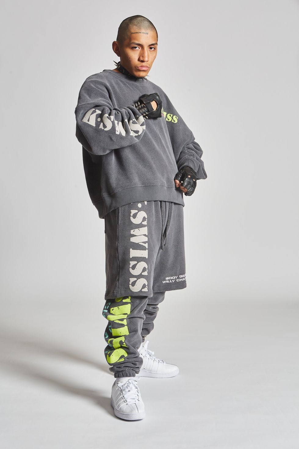 Chavarria further mirrored these themes within the design of his metal-spiked and "leaking foam" K-Swiss shoe, which is "intended to get dirty quickly," as he wanted "each step to become visible on this shoe telling the story of the person who wears it."