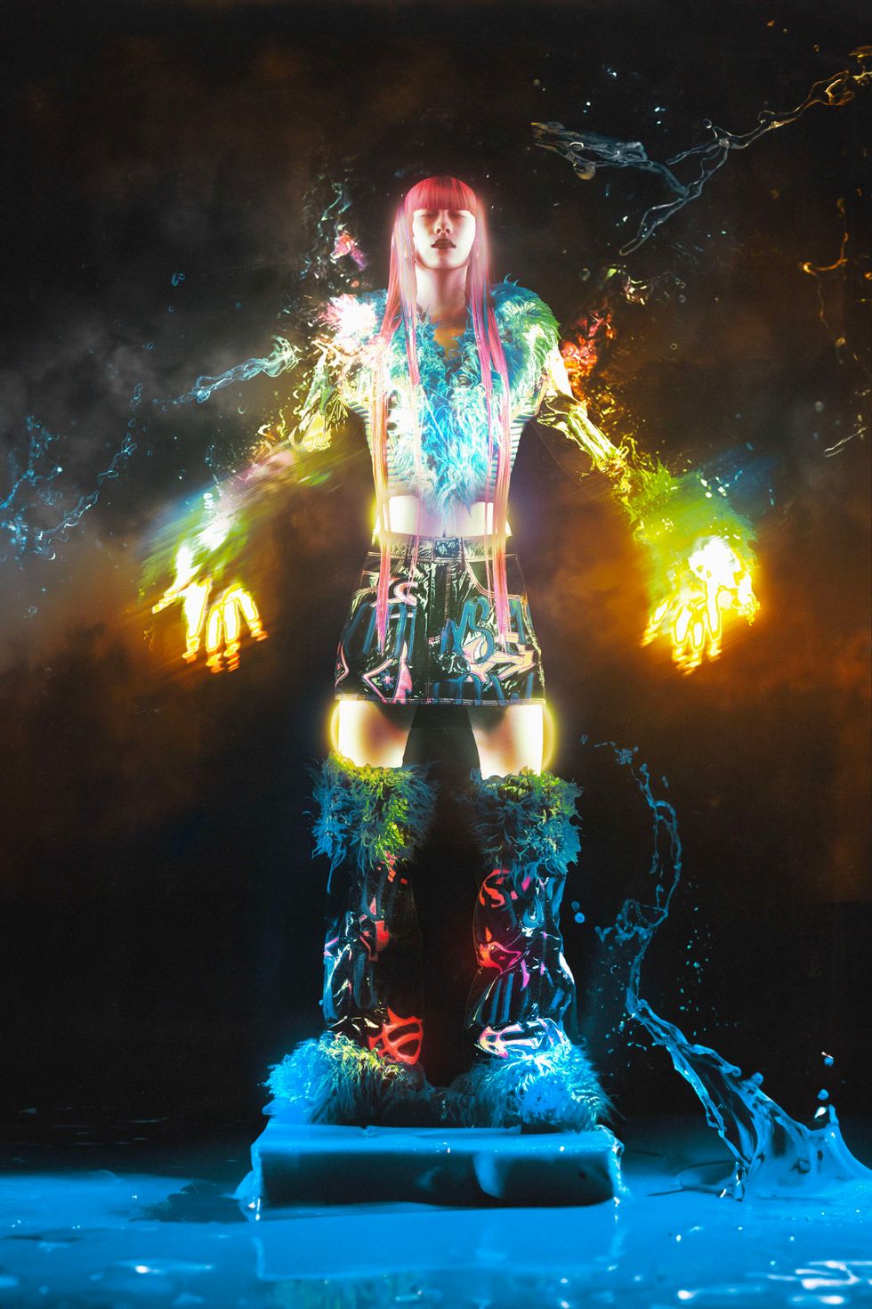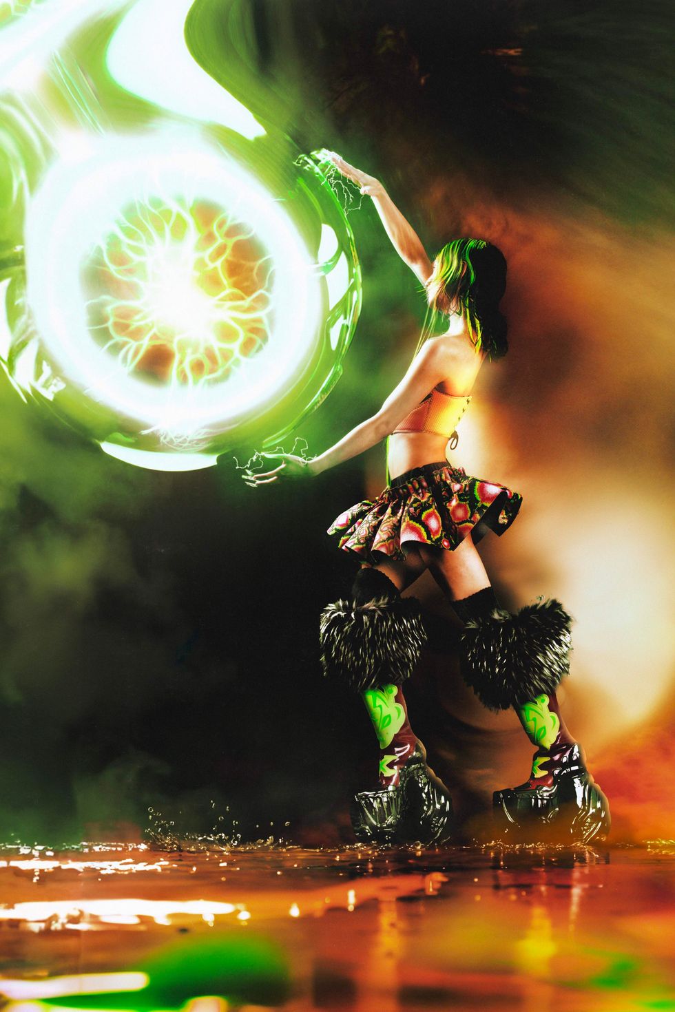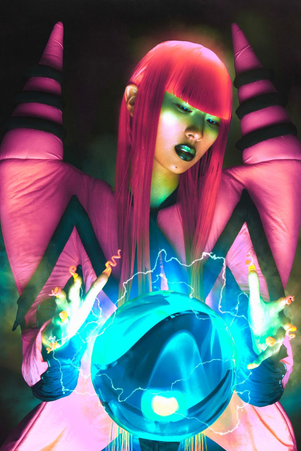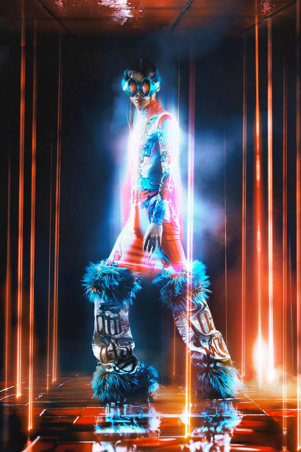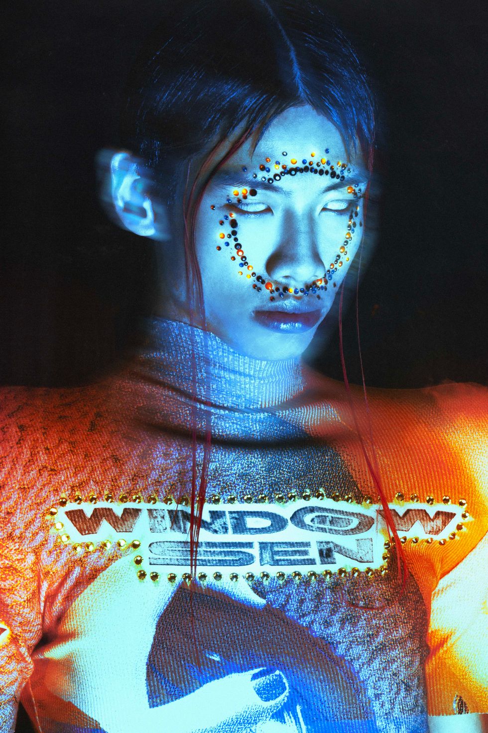 "The mood and general aesthetic we aimed to achieve with the photos, styling and design was a combination of retro-futurism from the '80s and '90s sci-fi artists and fantasy illustrations," creative director and stylist Sachin Gogna tells PAPER. "Enhancing this with Windowsen’s out-of-this-world aesthetic allowed us to create a digital and futuristic world while still maintaining a playful and nostalgic tone."