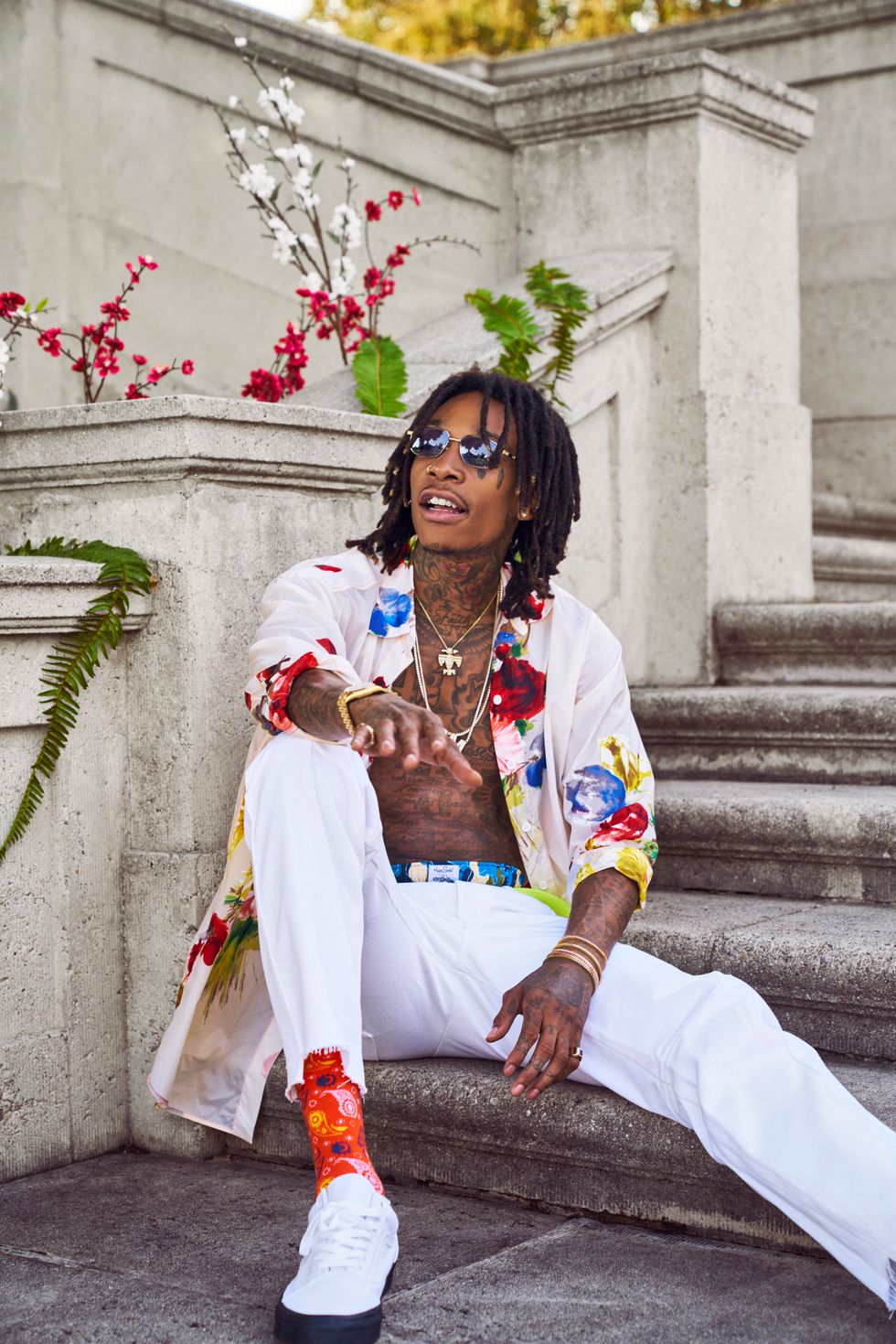 Wiz Khalifa is having a whirlwind summer. Last month Grammy-award winning rapper — who is currently touring around The U.S. — dropped his sixth album Rolling Papers 2. This week, along with releasing the music video for his track "Hopeless Romantic" featuring Swae Lee, Khalifa has unveiled a new collaboration with Swedish brand Happy Socks.