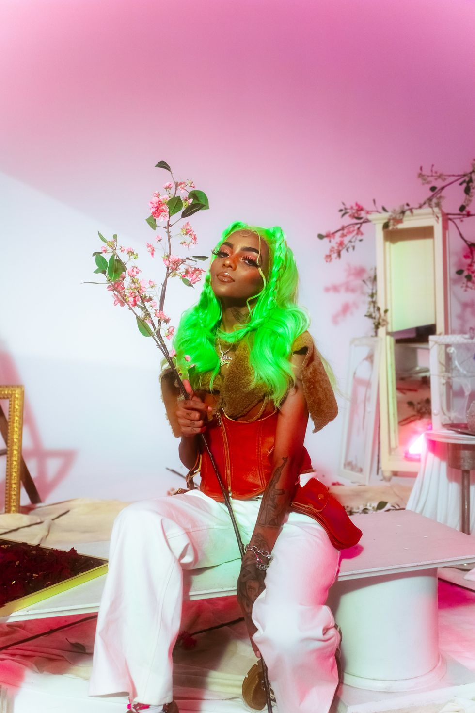 Rico Nasty is a born trailblazer. Chances are the Brooklyn native, known for her unique 'sugar trap' aesthetic and authentic, punk rock sound is already on your favorite rapper's mood board. Rico works with celebrity makeup artist Scott Osbourne, Jr, to create kaleidoscopic beauty looks that lean towards science fiction, incorporating things like prosthetic elf ears, bandages, gauges, and full face paint to create a style Rico describes as simple, "Don't give a fuck."