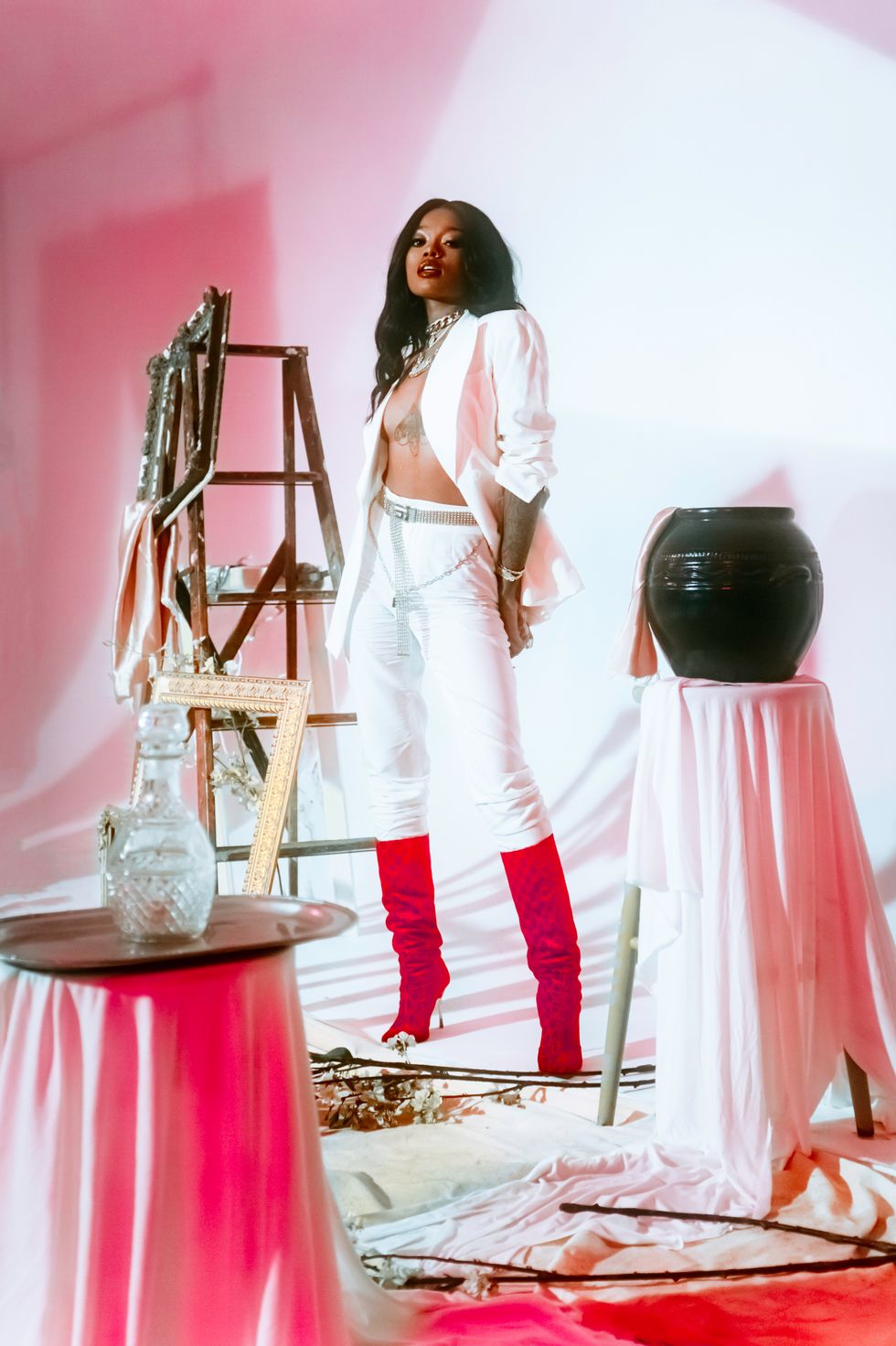 The best way we can amplify it is through our music, our social media — any type of outlet. As far as walking into a label and demanding what we want and what we need, I feel like they're just like, "Yeah whatever, we already got everything planned out for you." But I've got my own plan. I don't want to do it that way. I want to do it my way. I don't want to be the next Nicki, or the next Cardi or the next Kim. I want to do it my way and come up with my own ideas. Females don't really get to do that. Mainly the males in the industry get to do that, they let the males control what they want to do with music and videos. But with women they try to puppet us. It's always a bunch of dudes just trying to control you behind the scenes. Me personally though, I always try to prove myself. When someone says I can't do it, I try to do it anyway.
