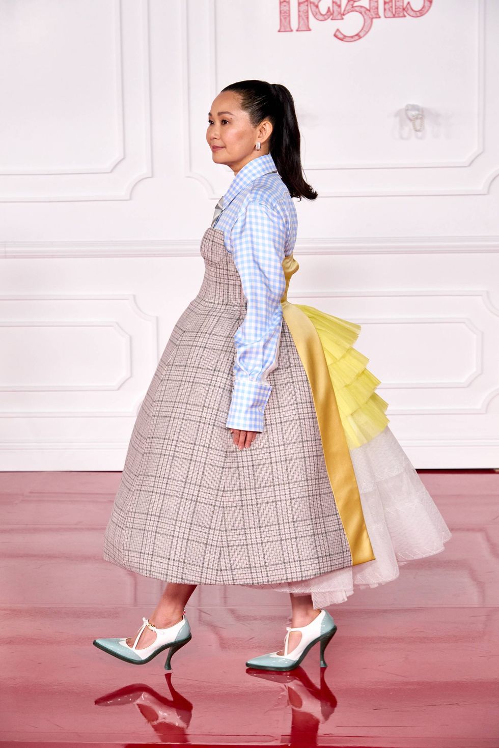 Thom Browne just gets it. Hong Chau gets it even more! This Thom Browne moment is whimsical and irreverent, just like the oddball carpet for the film. These shoes are perhaps my favorite accessories of the season, and this bustle contrasted with the structured plaid is the house at it's very best. Kudos to Chau, kudos to her stylist, and kudos, at last, to Thom Browne!