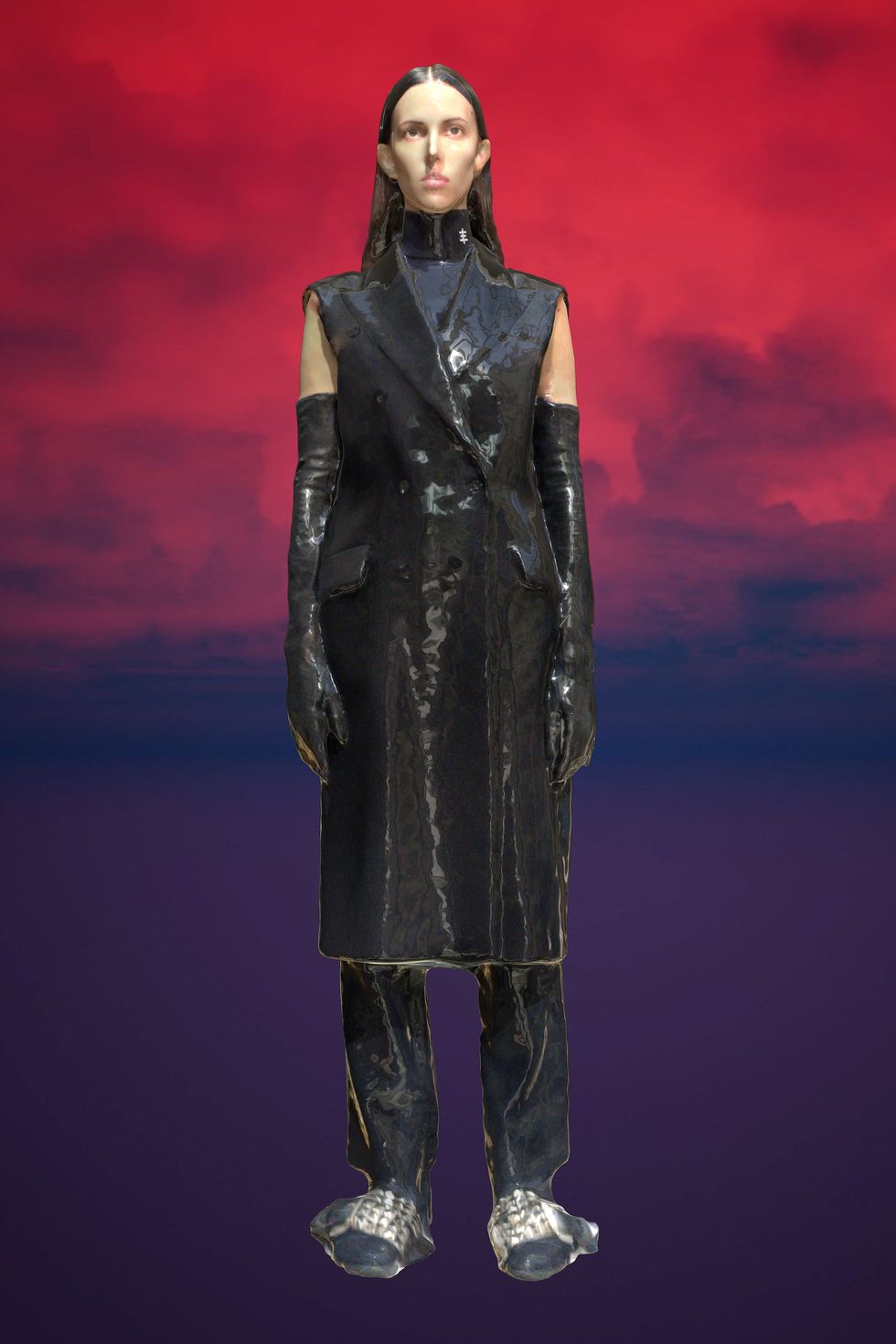 For Spring 2020, on September 28th Li presented the "Automatic Show II: Greatest Hits" at La Gaité Lyrique in Paris. The collection was shown on 3-D models — based on scans of Ruby Aldridge, Wolf Gillespie (son of legendary stylist Katy England and Primal Scream's Bobby Gillespie) and Tatiana Katysheva — created by artist Agusta Yr, in collaboration with Showstudio. They looked like cracked ceramic dolls.