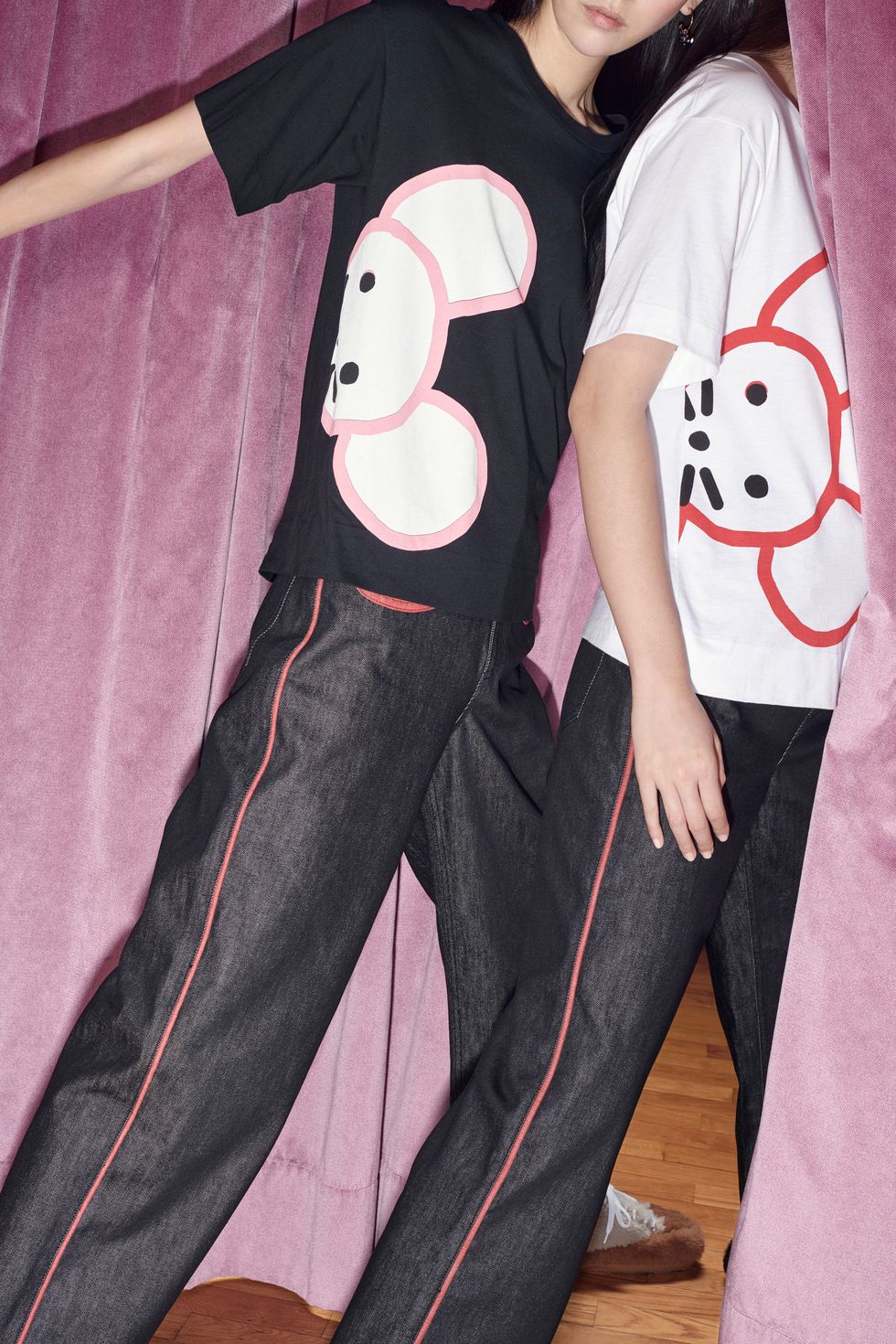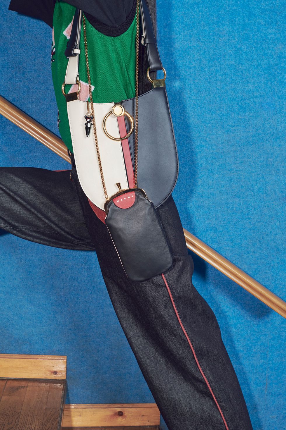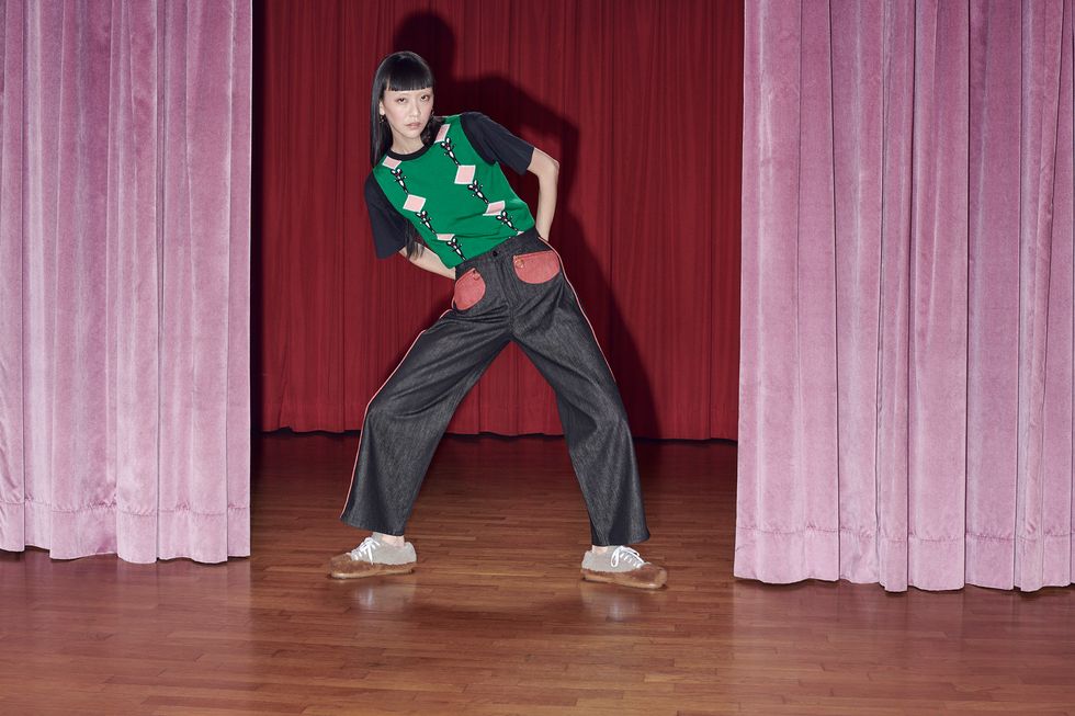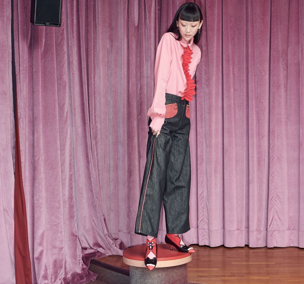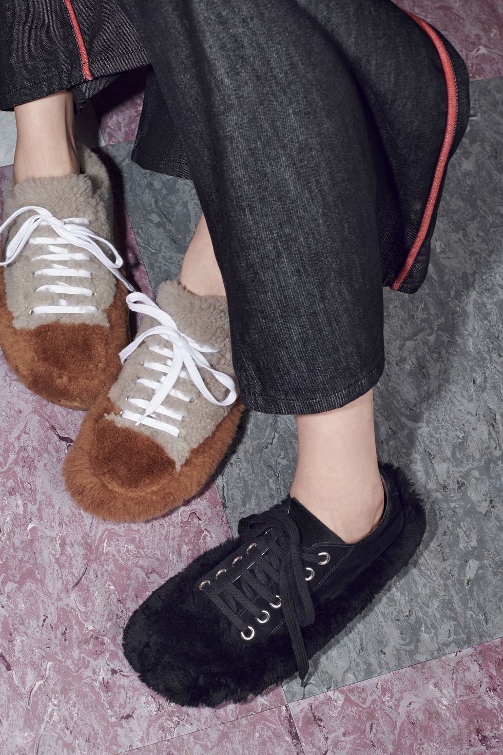 Marni's playful designs and quirky chic silhouettes also get in on the mouse action, with the little critter emerging as motifs on everything from knitted tops in a series of bright colors to socks, hats, and T-shirts. Leather pumps mimicking a mouse's face are another standout piece.