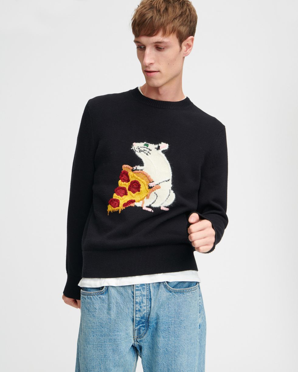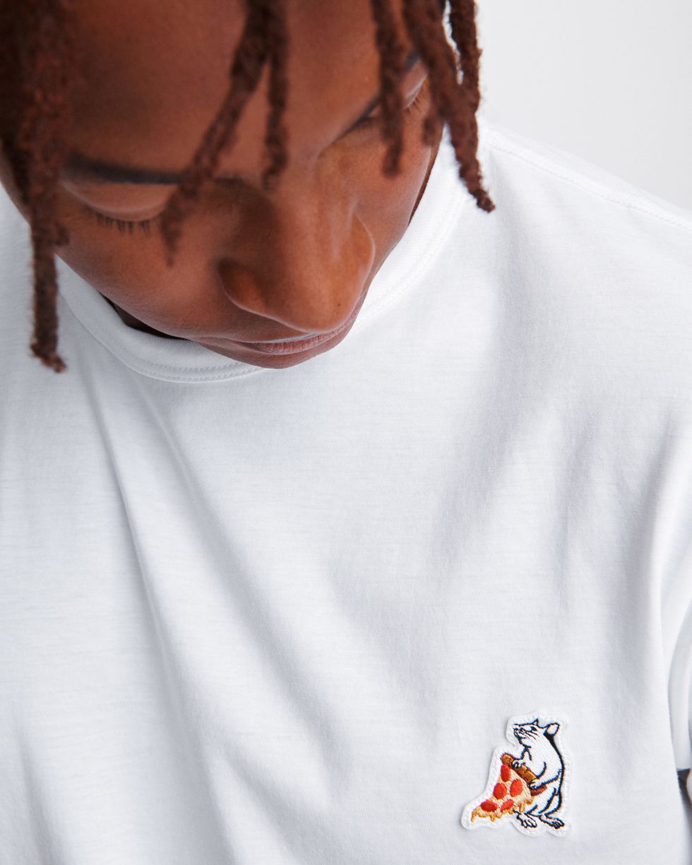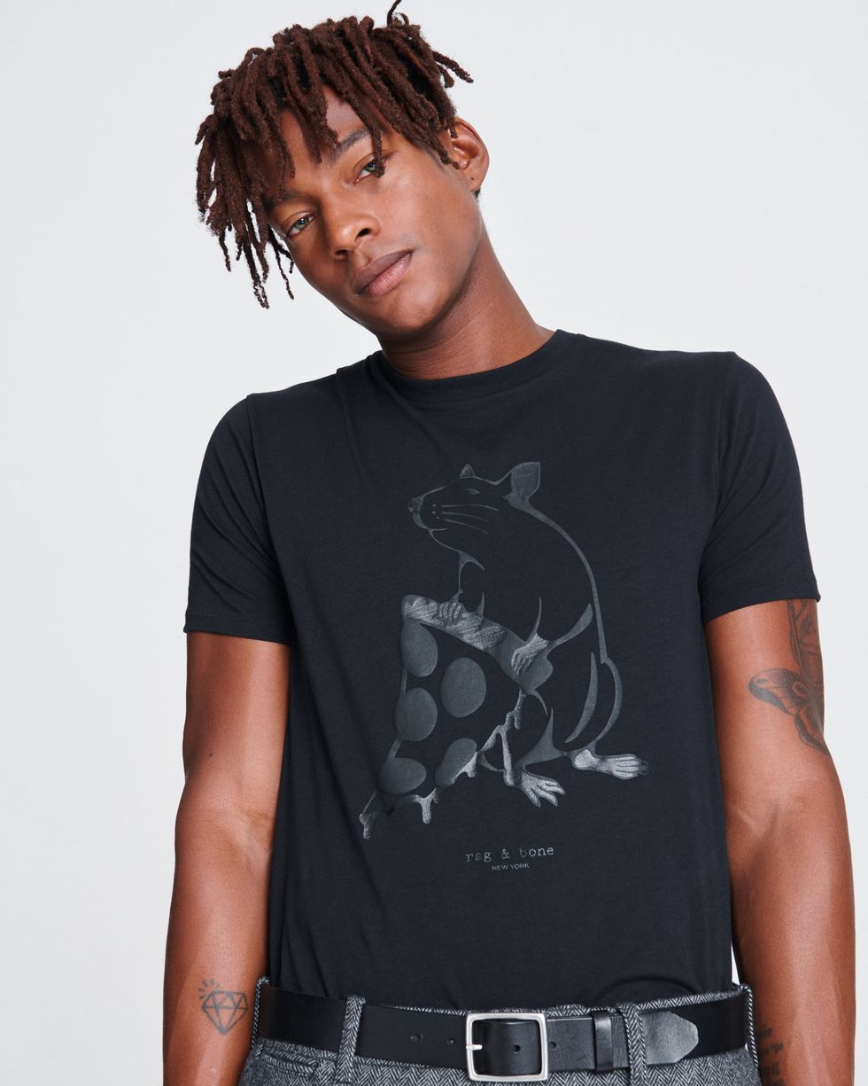 Rag & Bone dropped a Lunar New Year capsule of graphic tees, beanies, and small leather goods printed with images of 'Pizza Rat', in reference to the viral 2015 video of a New York City rat carrying a slice of pizza around a subway.