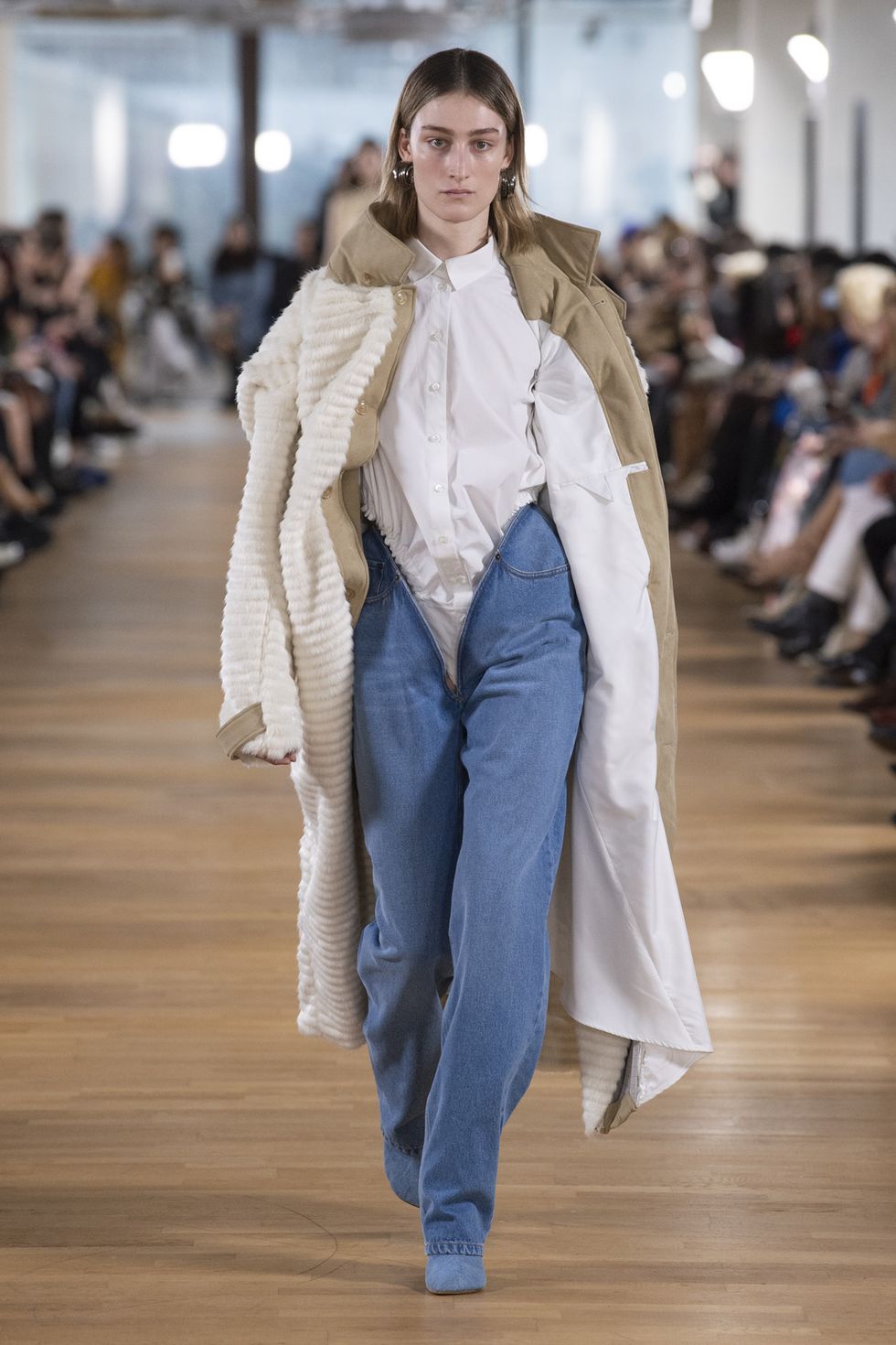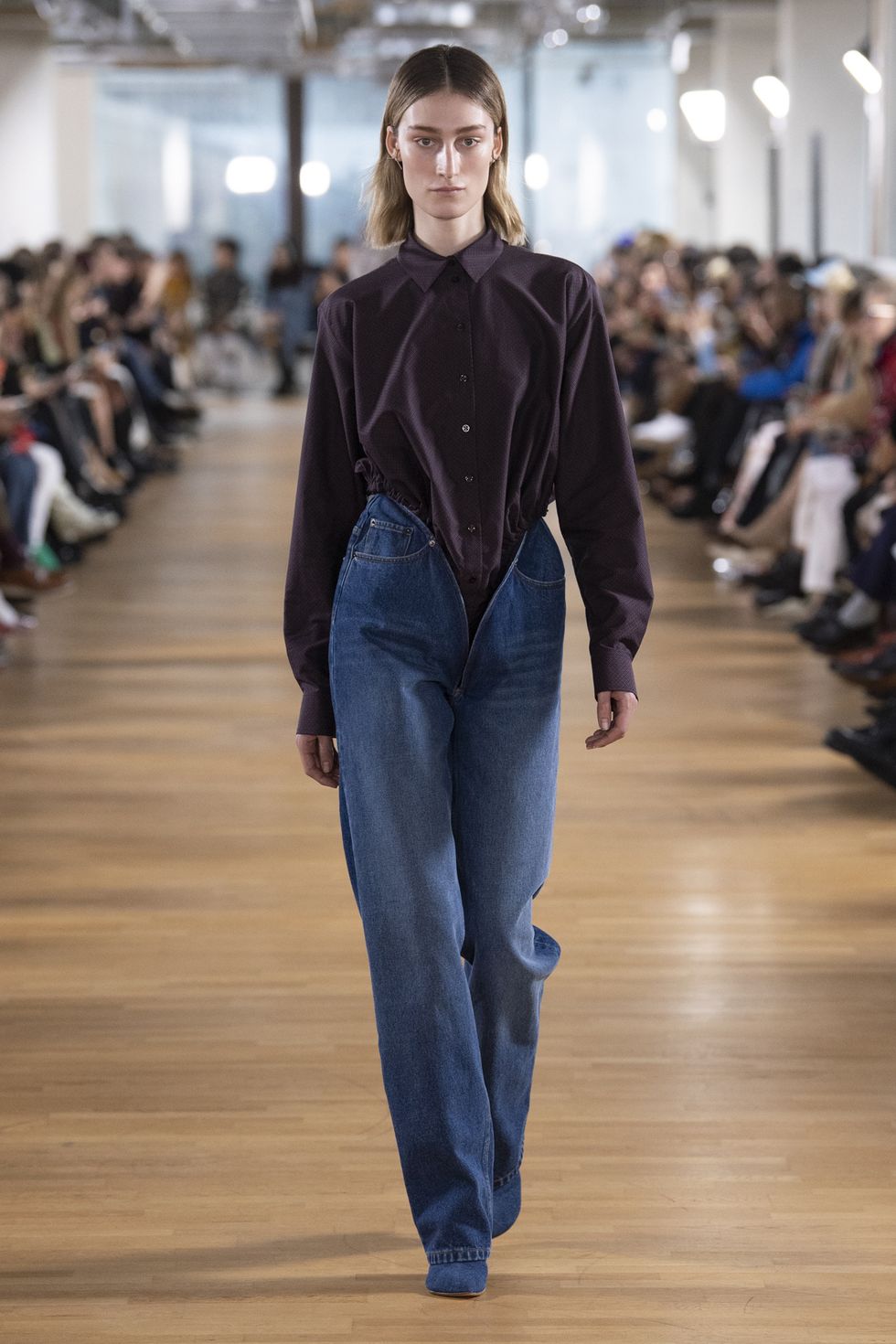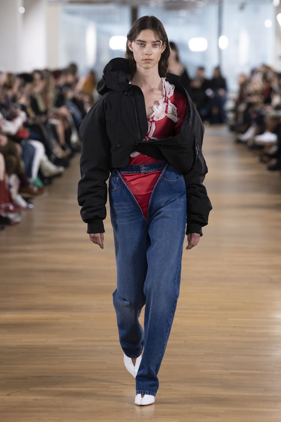 This brash form of thong cleavage is the brainchild of Y/Project's Glenn Martens, the same guy who went viral for putting denim panties and thigh-high UGG boots on the runway. He's also known for his signature V-cut waistbands, which reappeared in his Fall 2020 collection on everything from blue jeans to long skirts (layered over dresses and shirts, of course.)